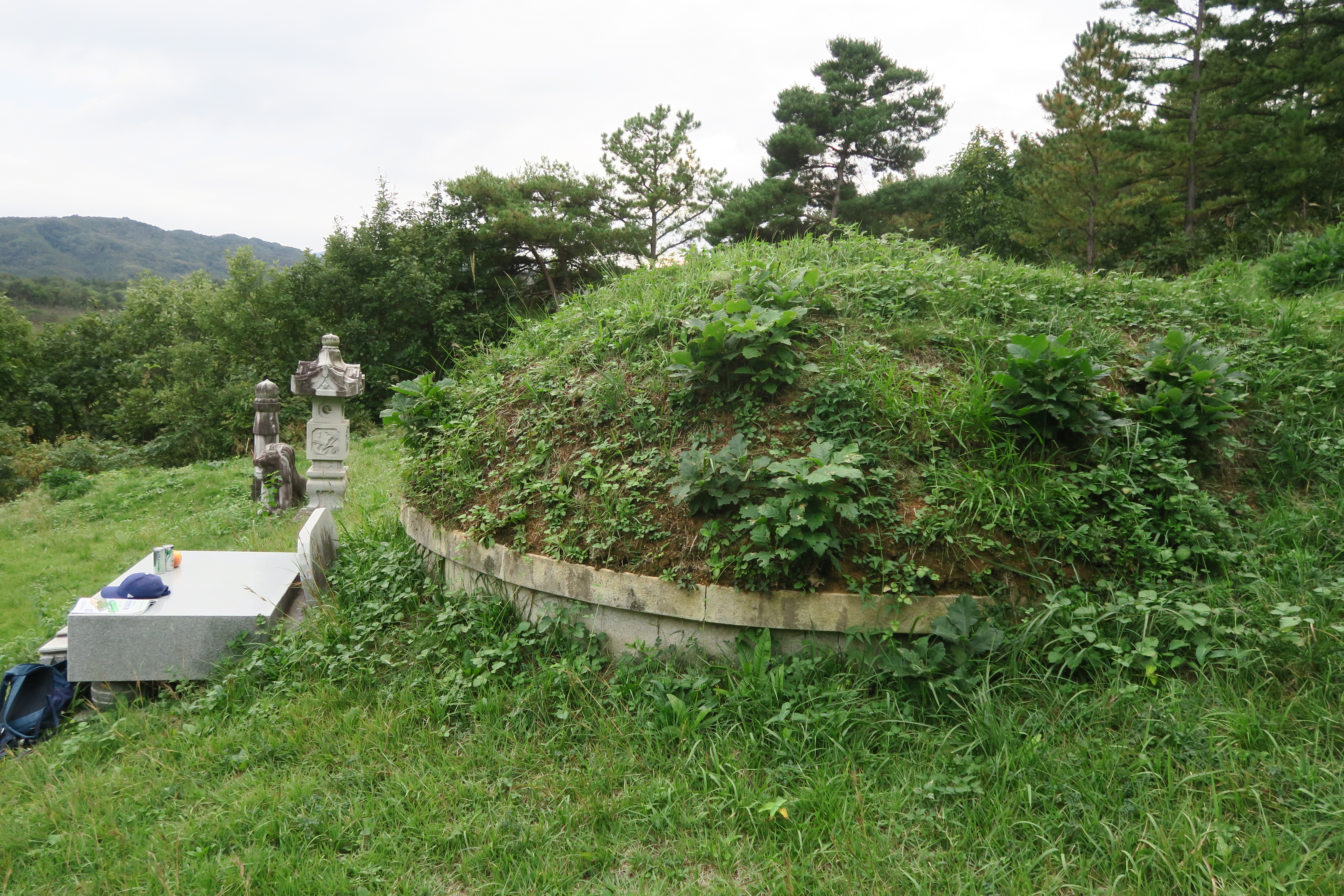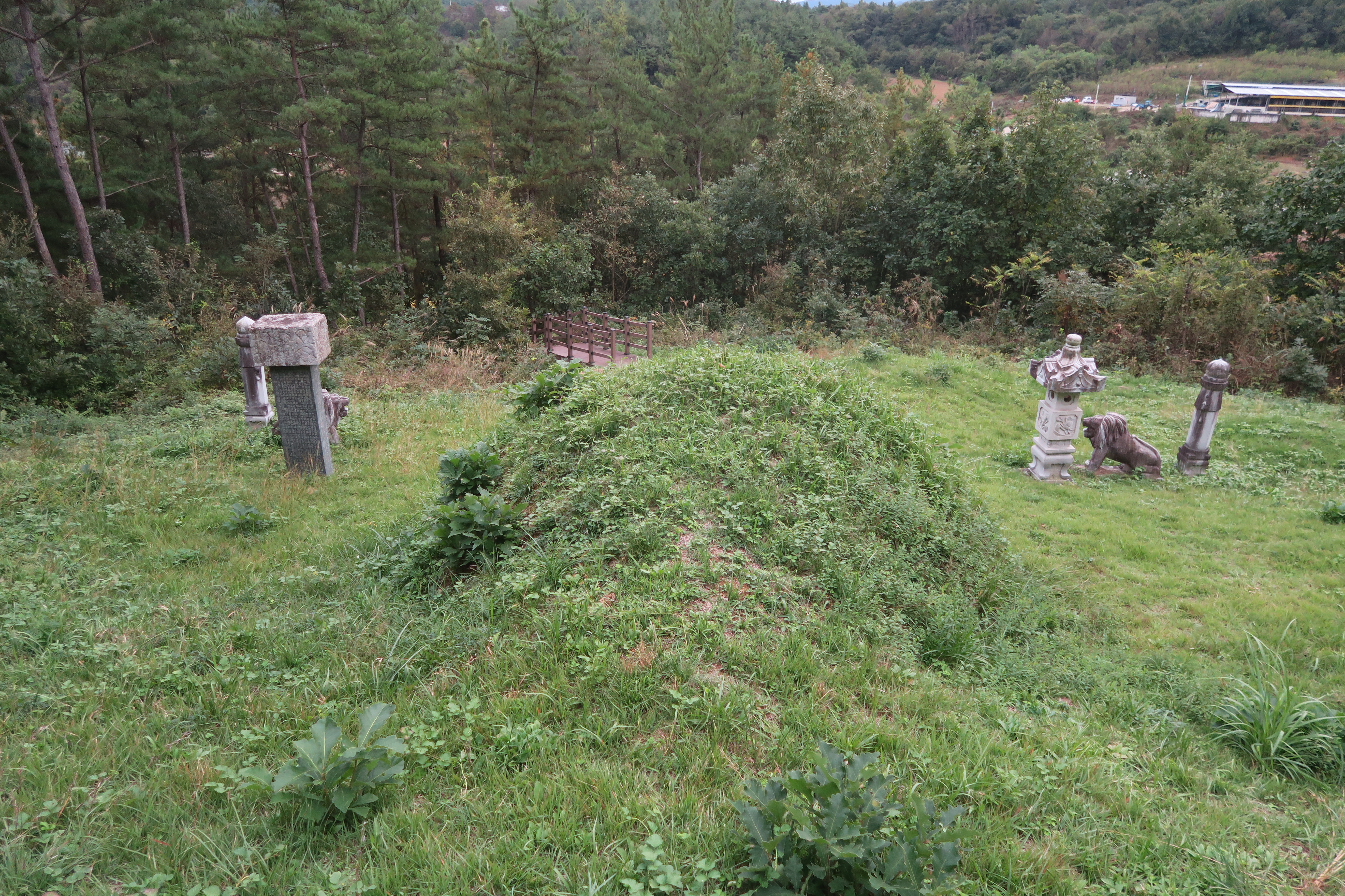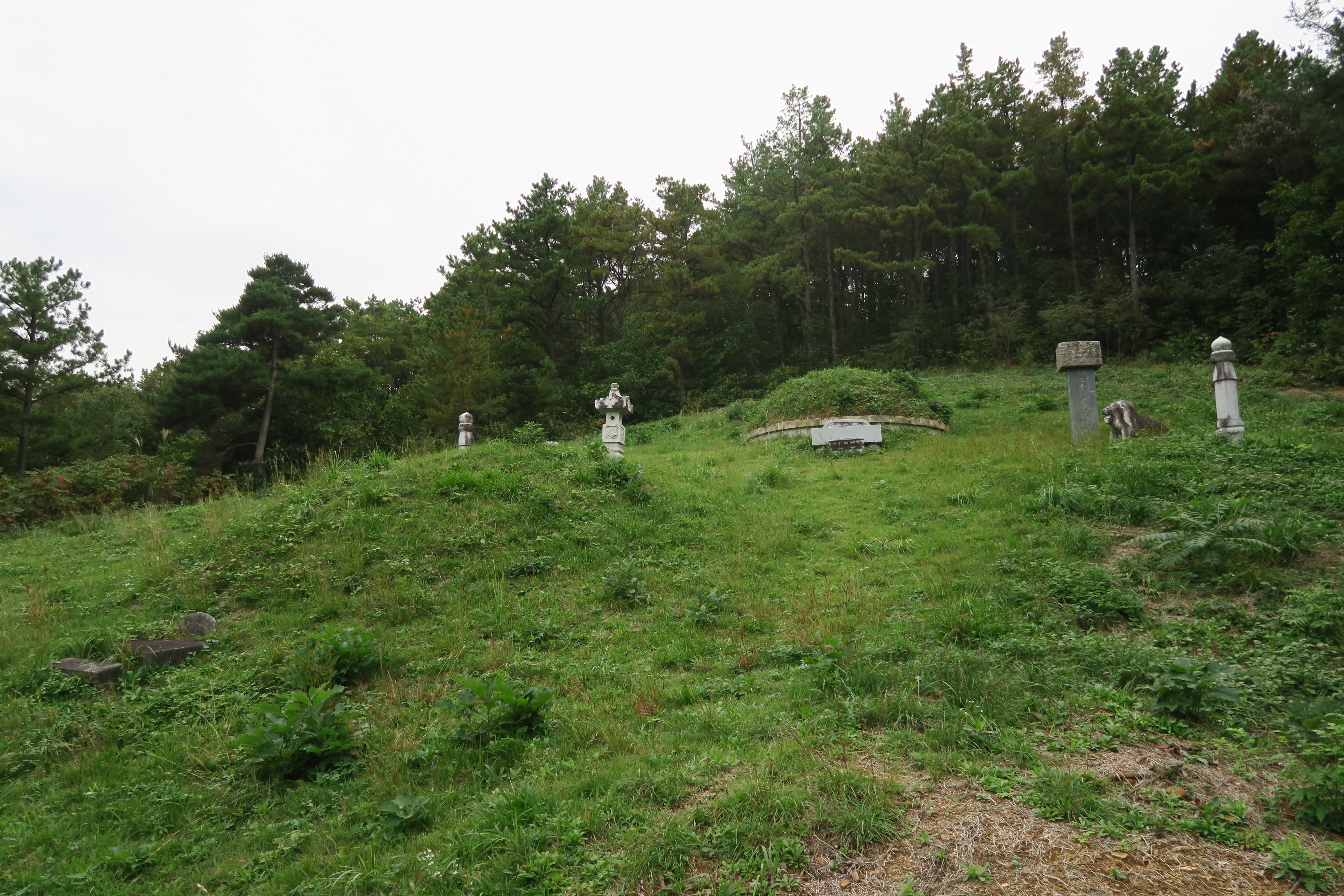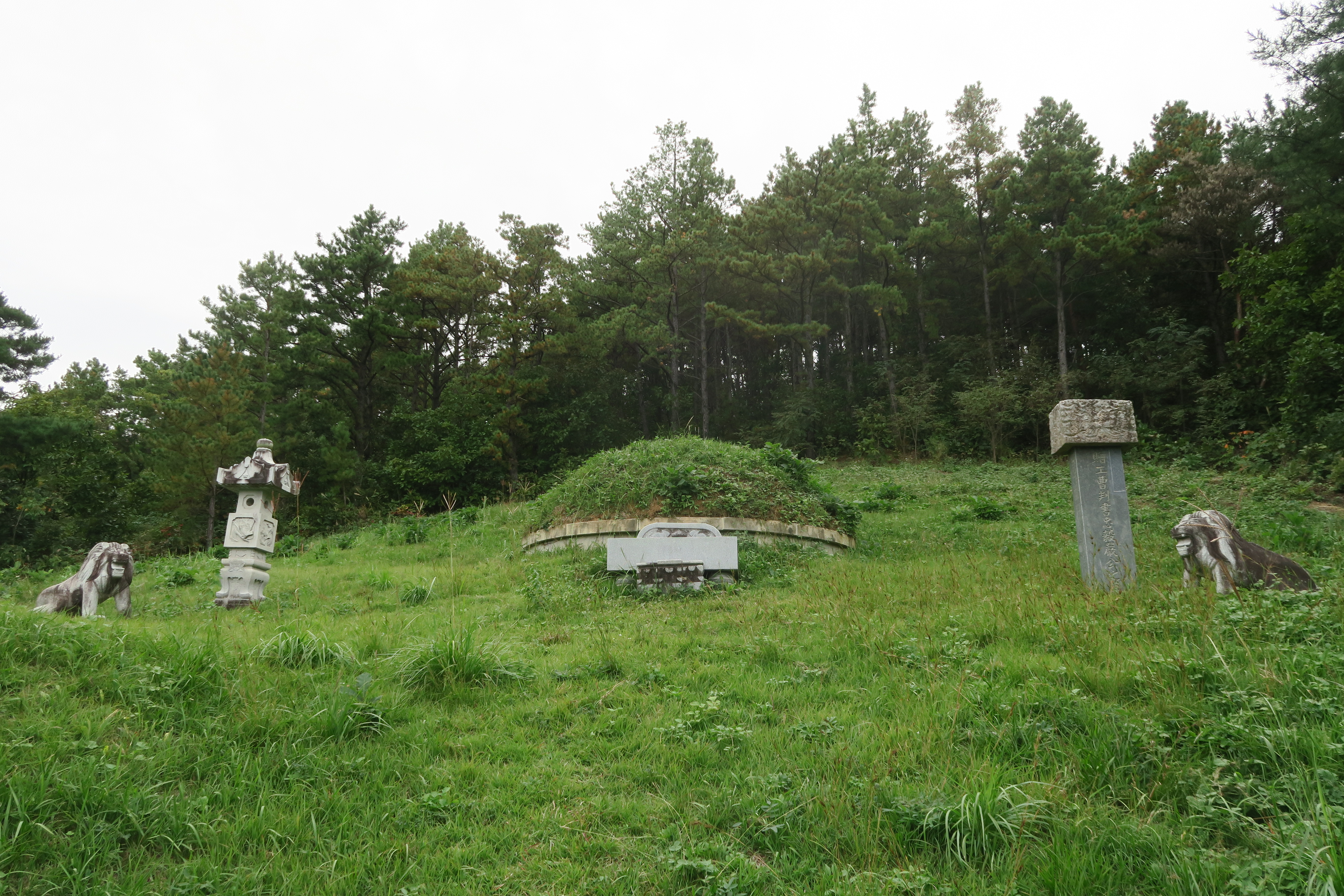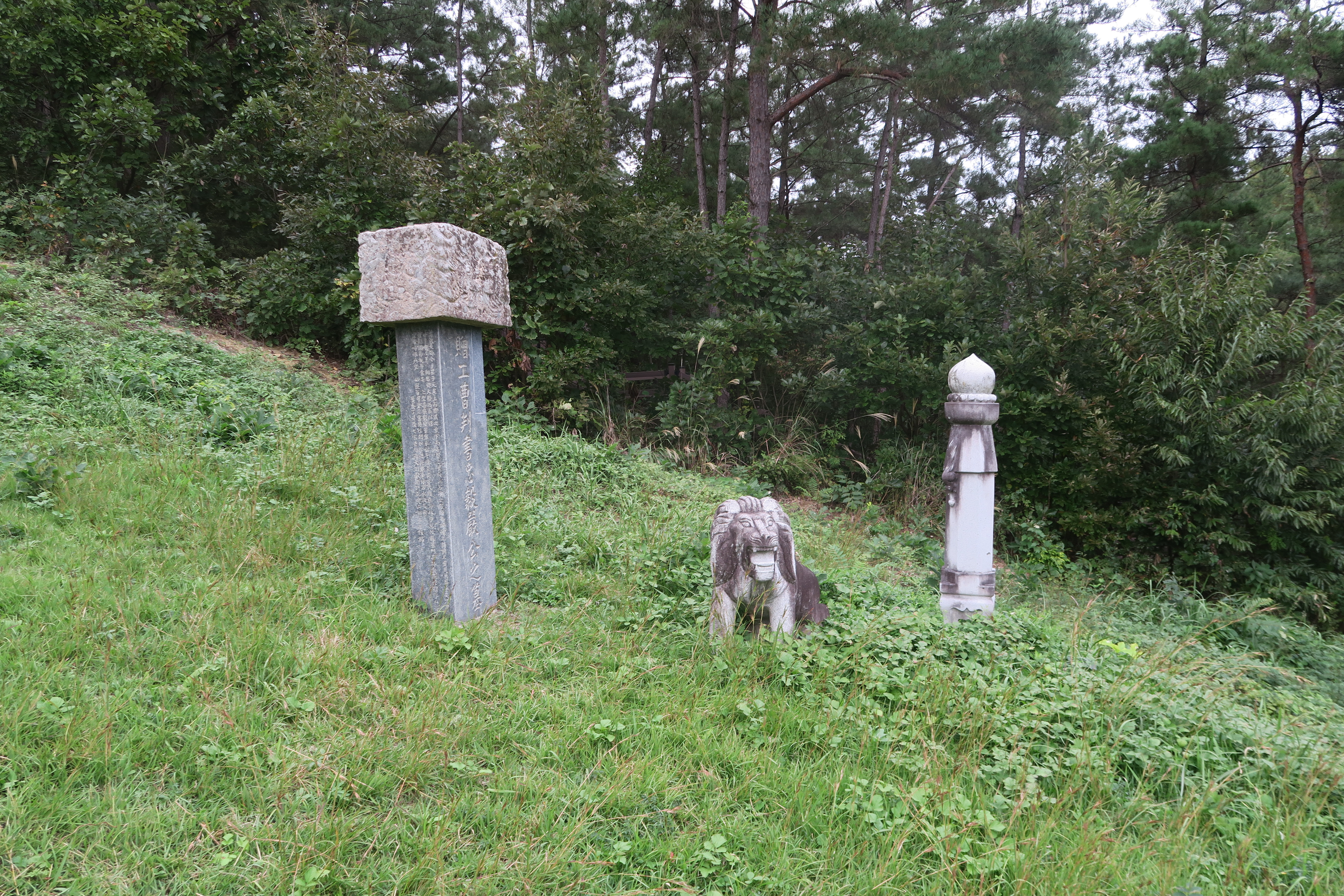 우측의 비석 돌사자 망주석.