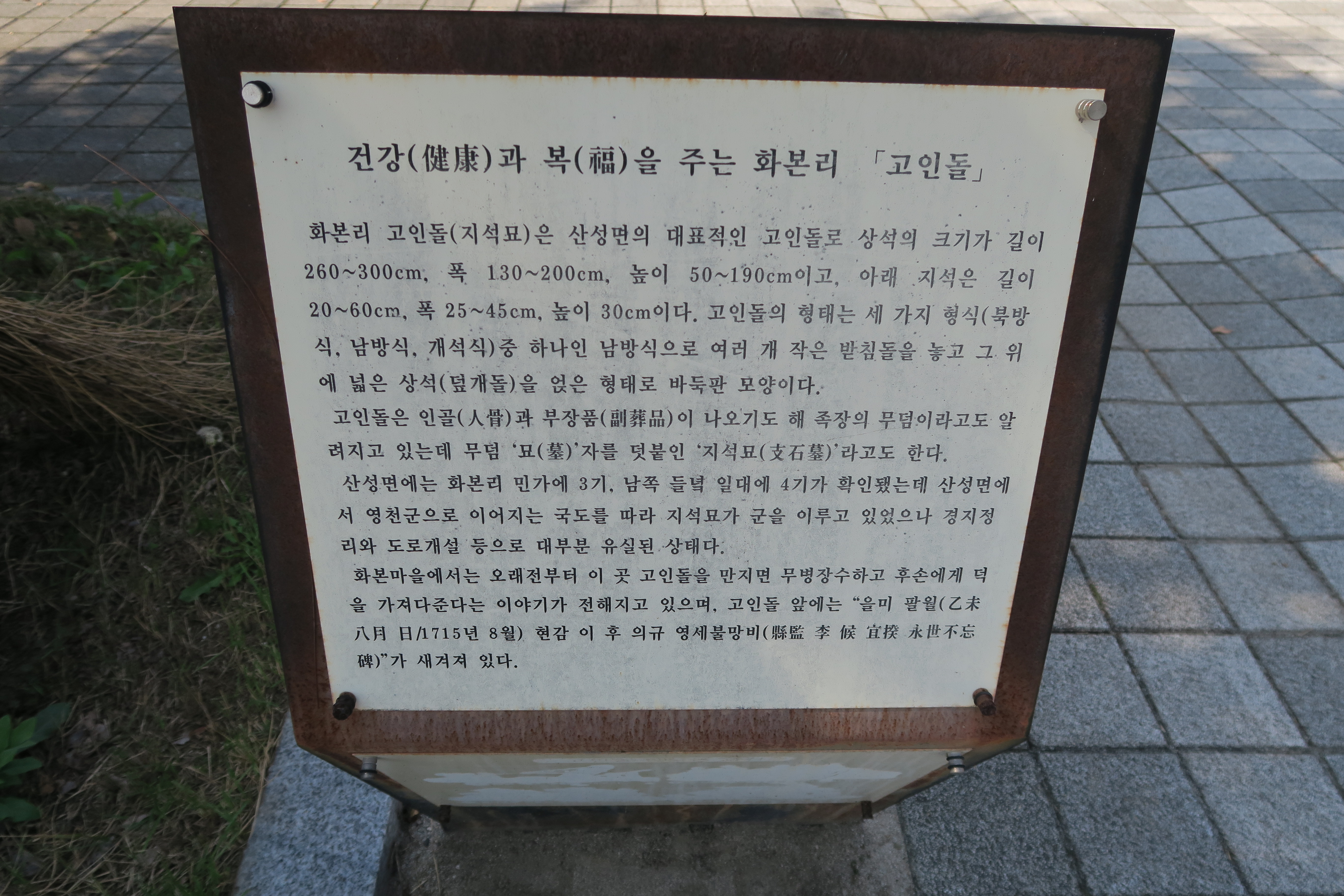 건강과 복을 주는 화본리 고인돌 안내문.