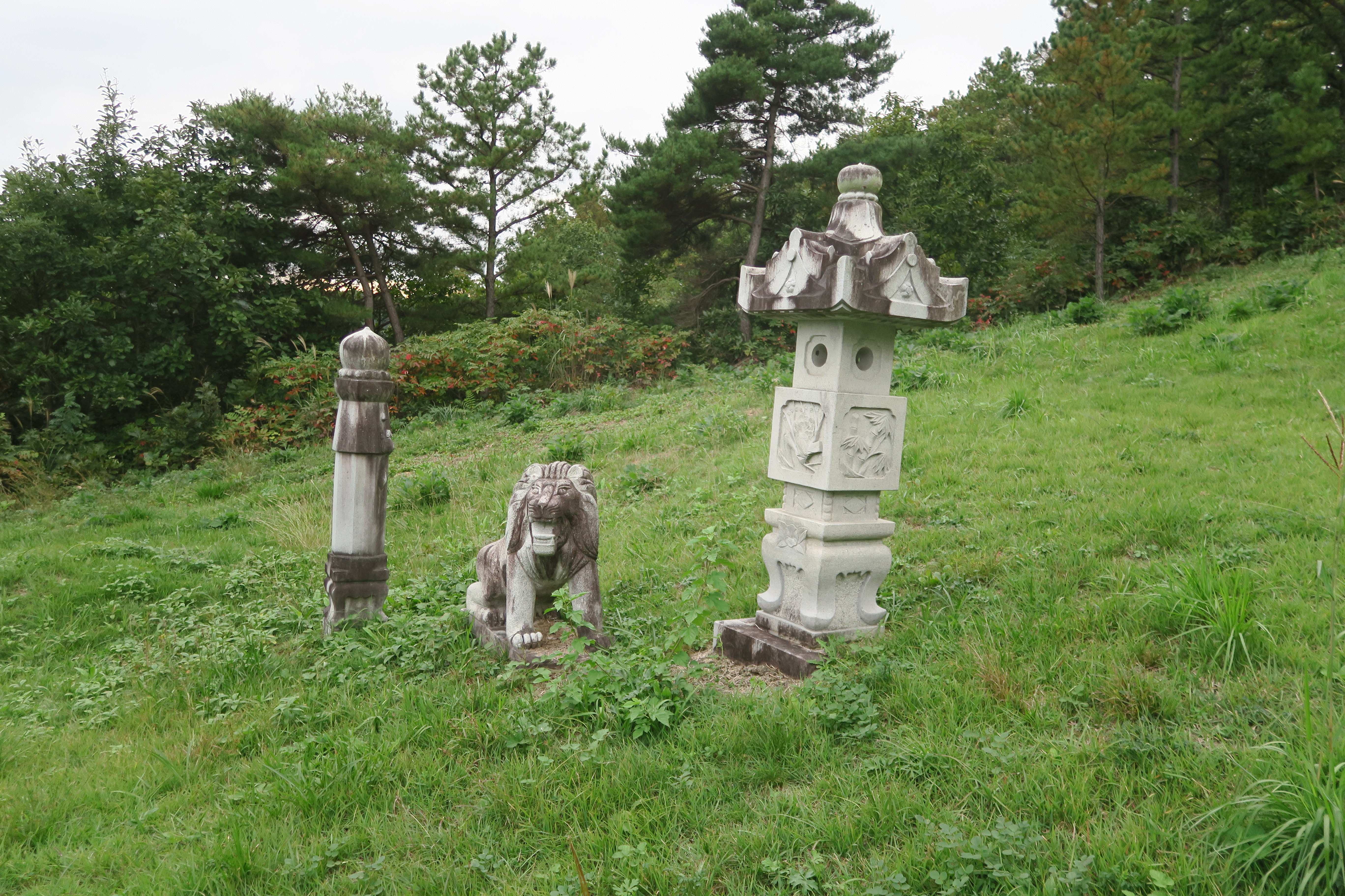 좌측의 석등 돌사자 망주석.