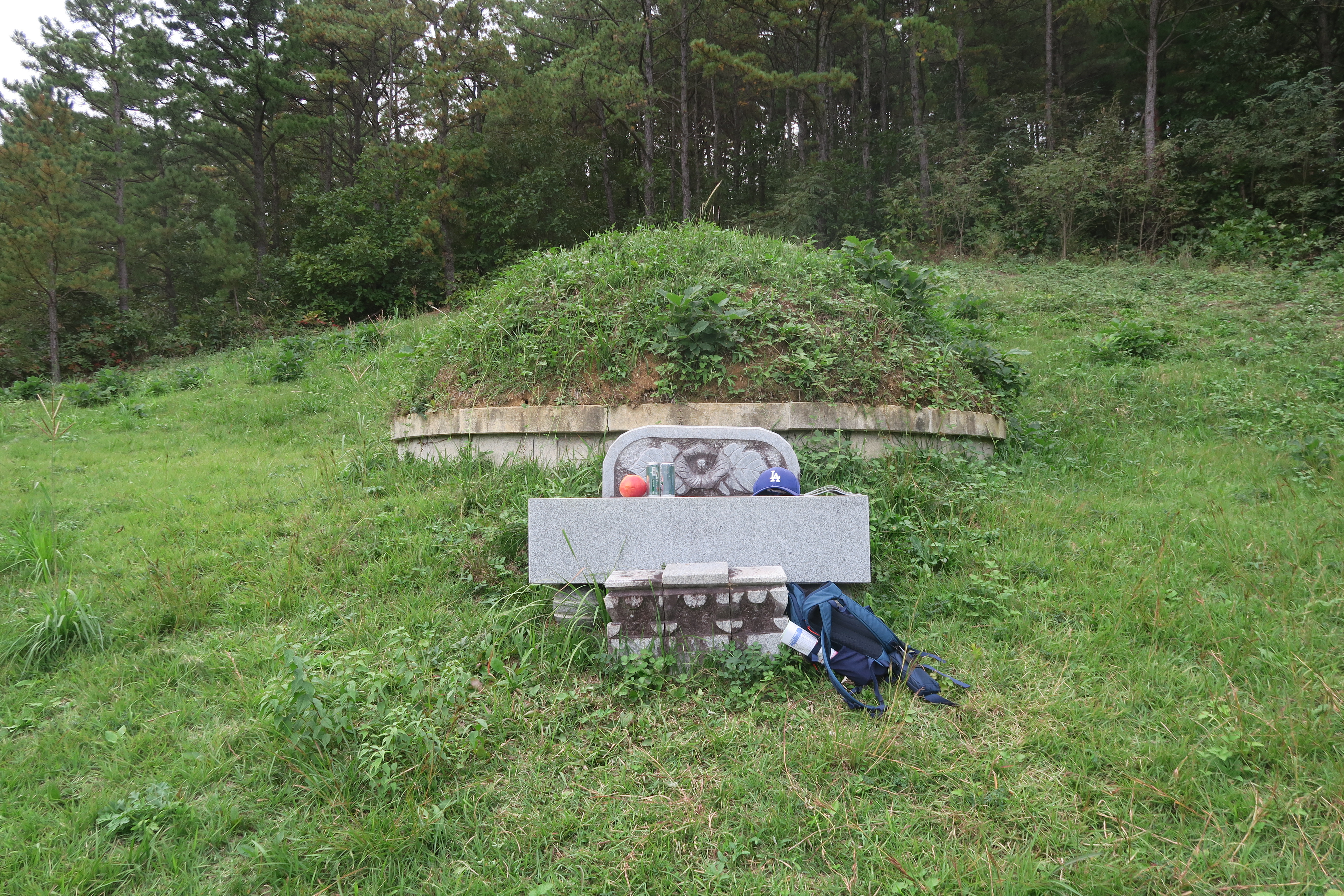 선생 묘소에 캔 음료수와 사과 한개 올려놓고 2배 올린다.