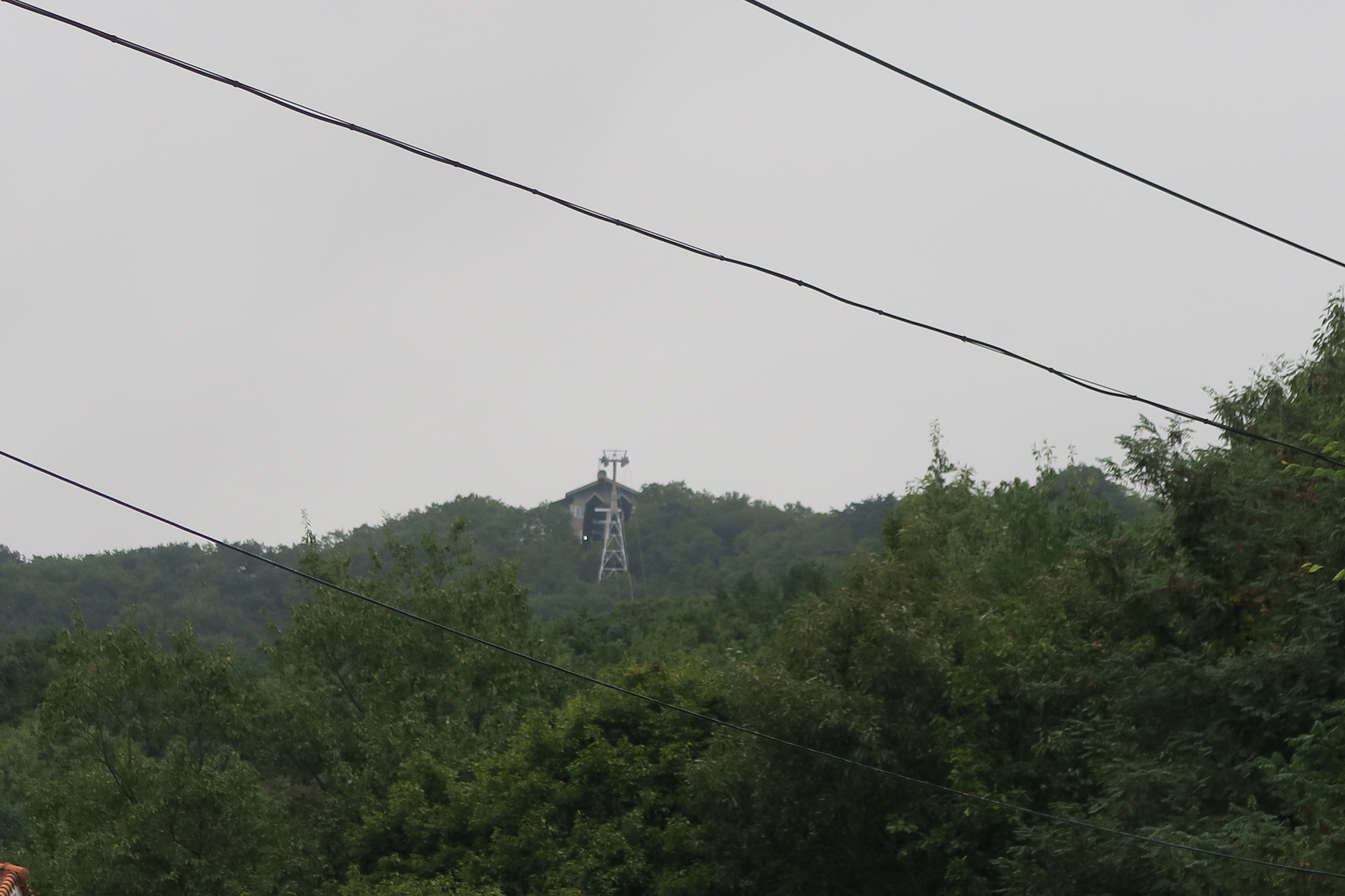 산 능선의 케이블 카