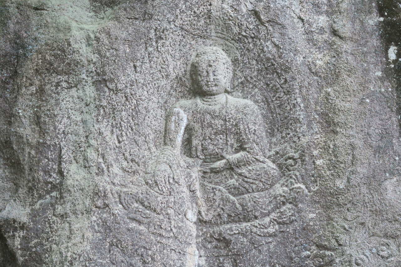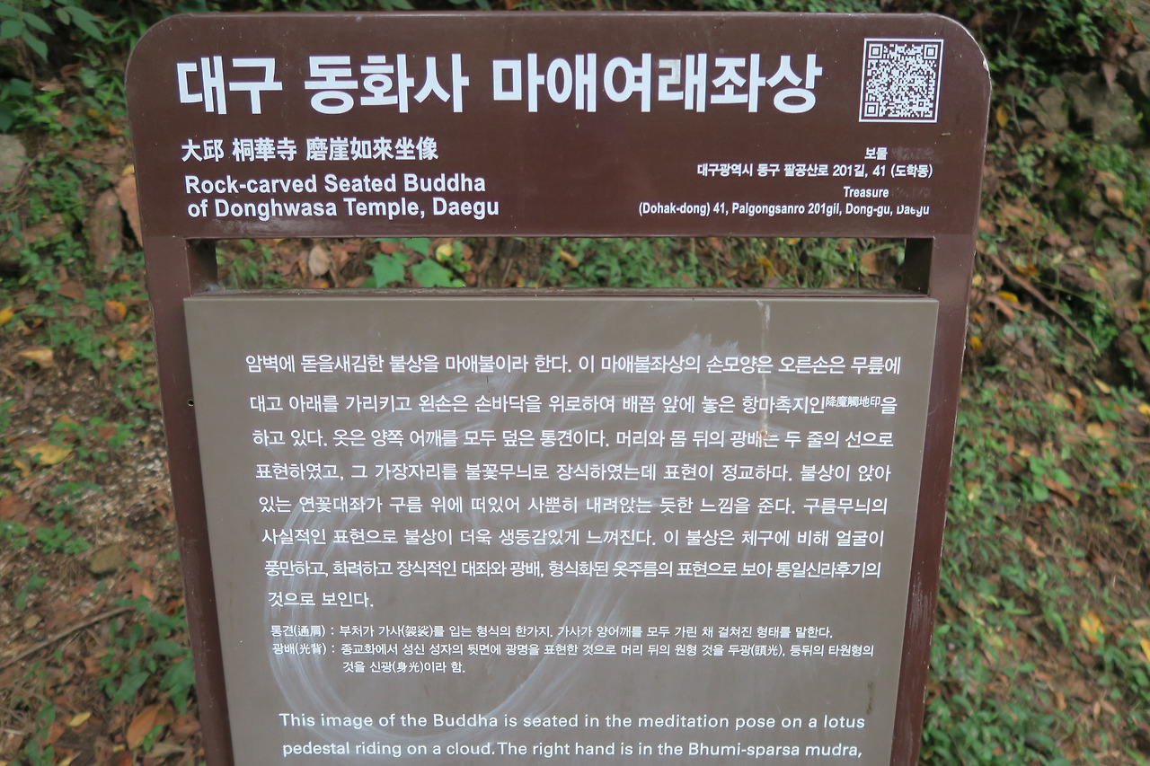 동화사 입구 오른쪽의 암벽을 다듬어서 조각한 불상이다. 지상에서 높이 위치한 이 불상은 구름을 타고 하늘에서 내려오는 듯한 개성있는 모습이다.
