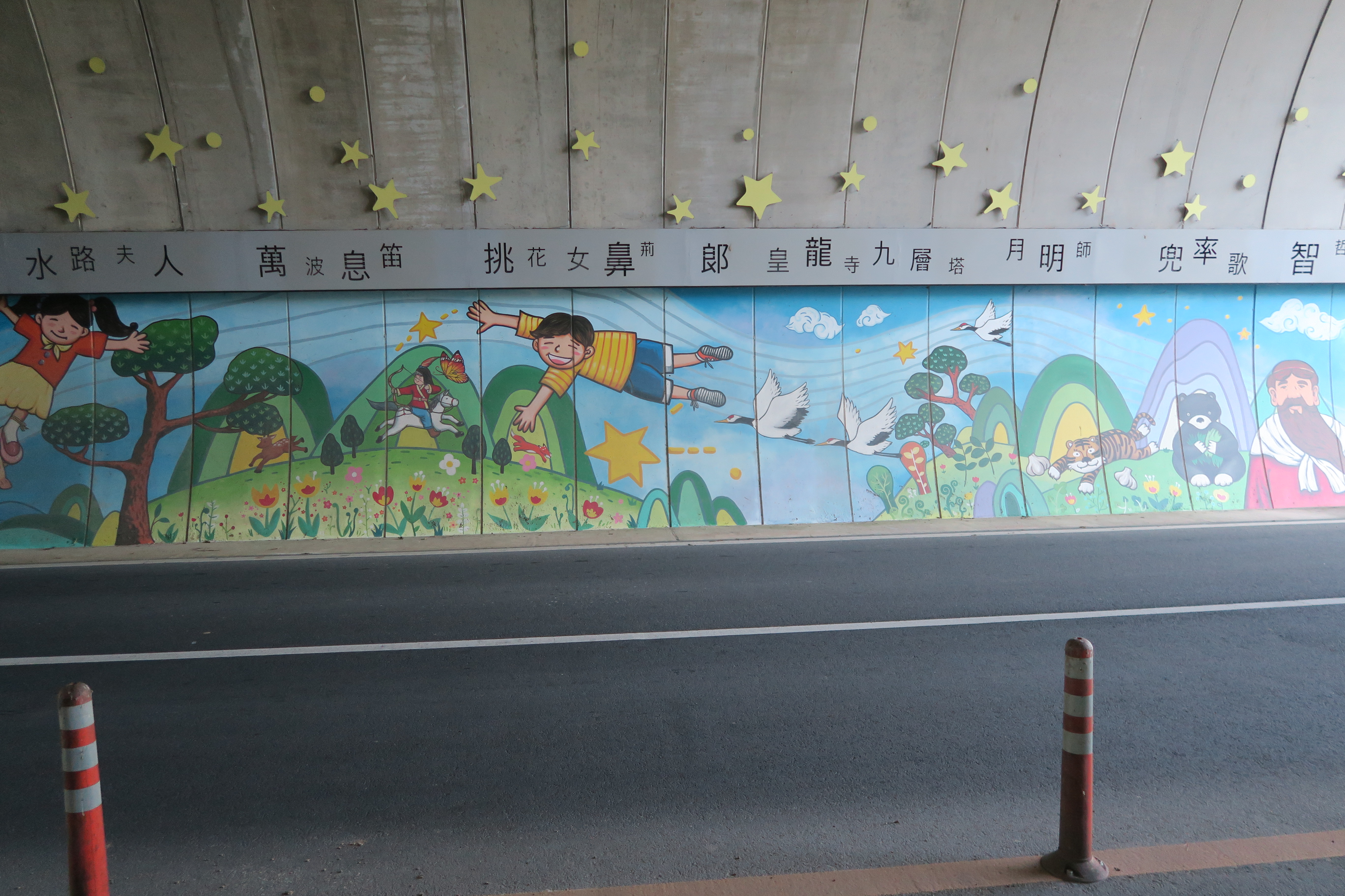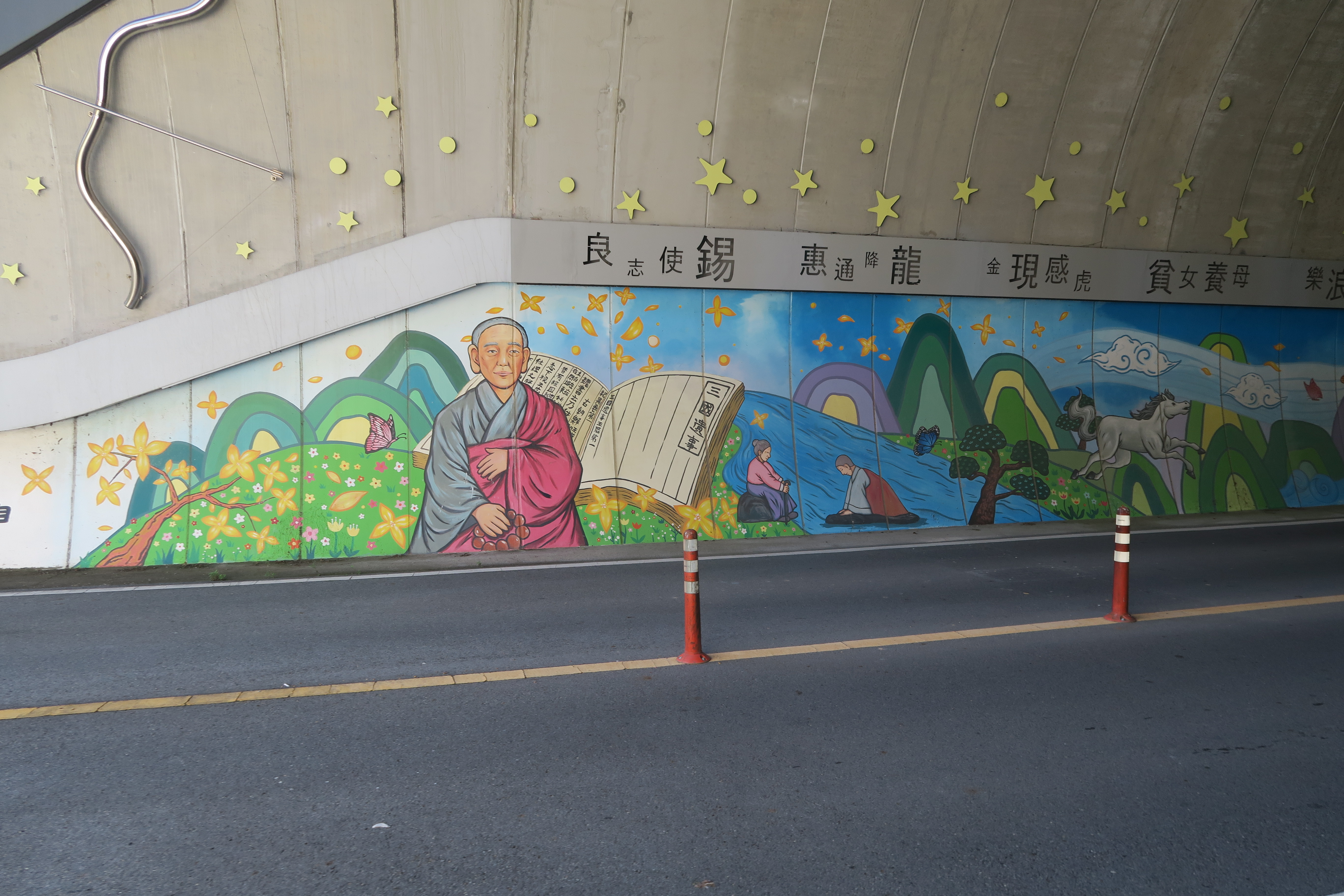 터널내부의 일연스님 삼국유사 벽화 안내.