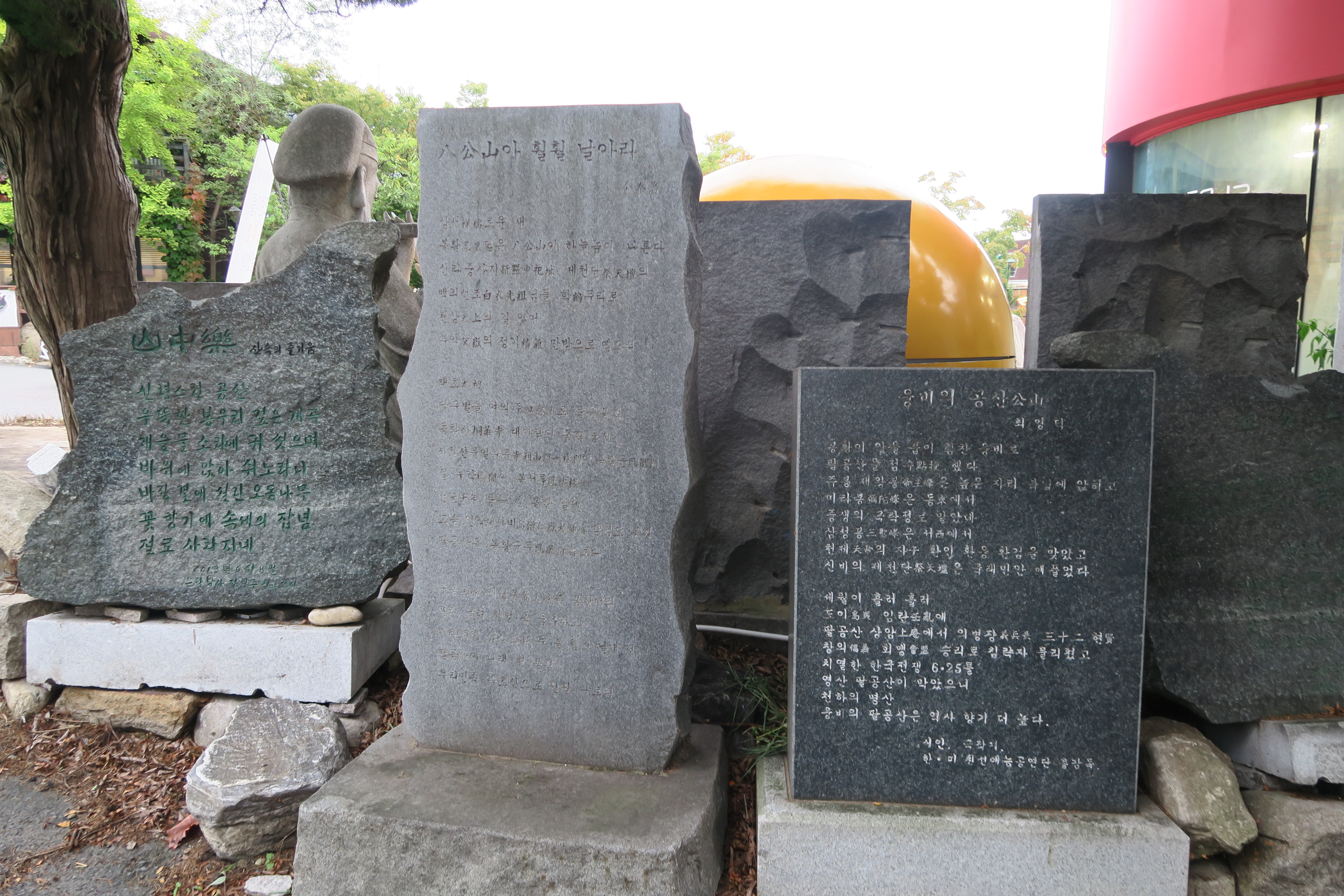 팔공산에 관련된 시비. 한 곳에 방치되어 있는 것보다 넓은 잔디밭에다 세웠으면... 하는 바램이다.