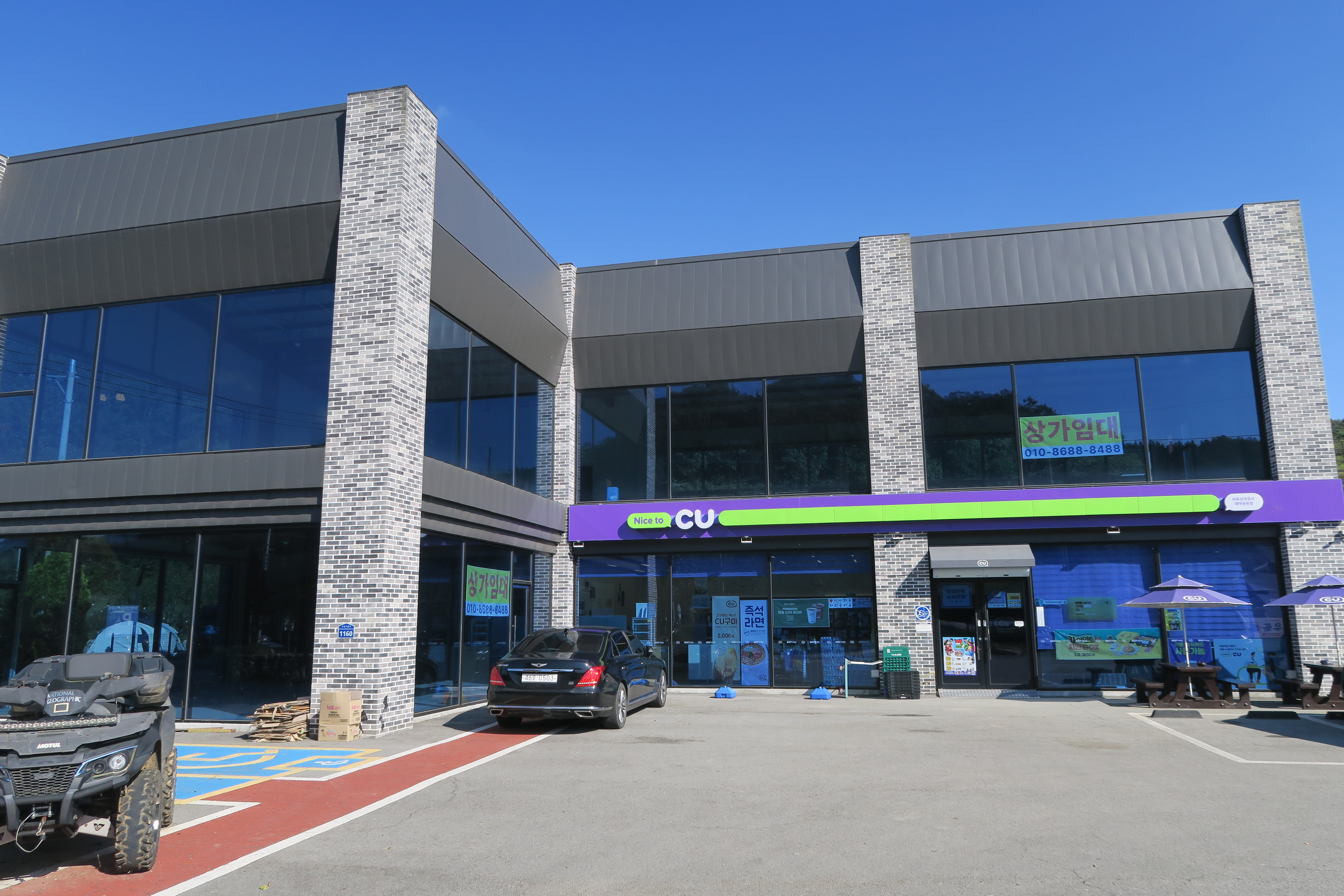 주차장에 각종 토산품 전시.