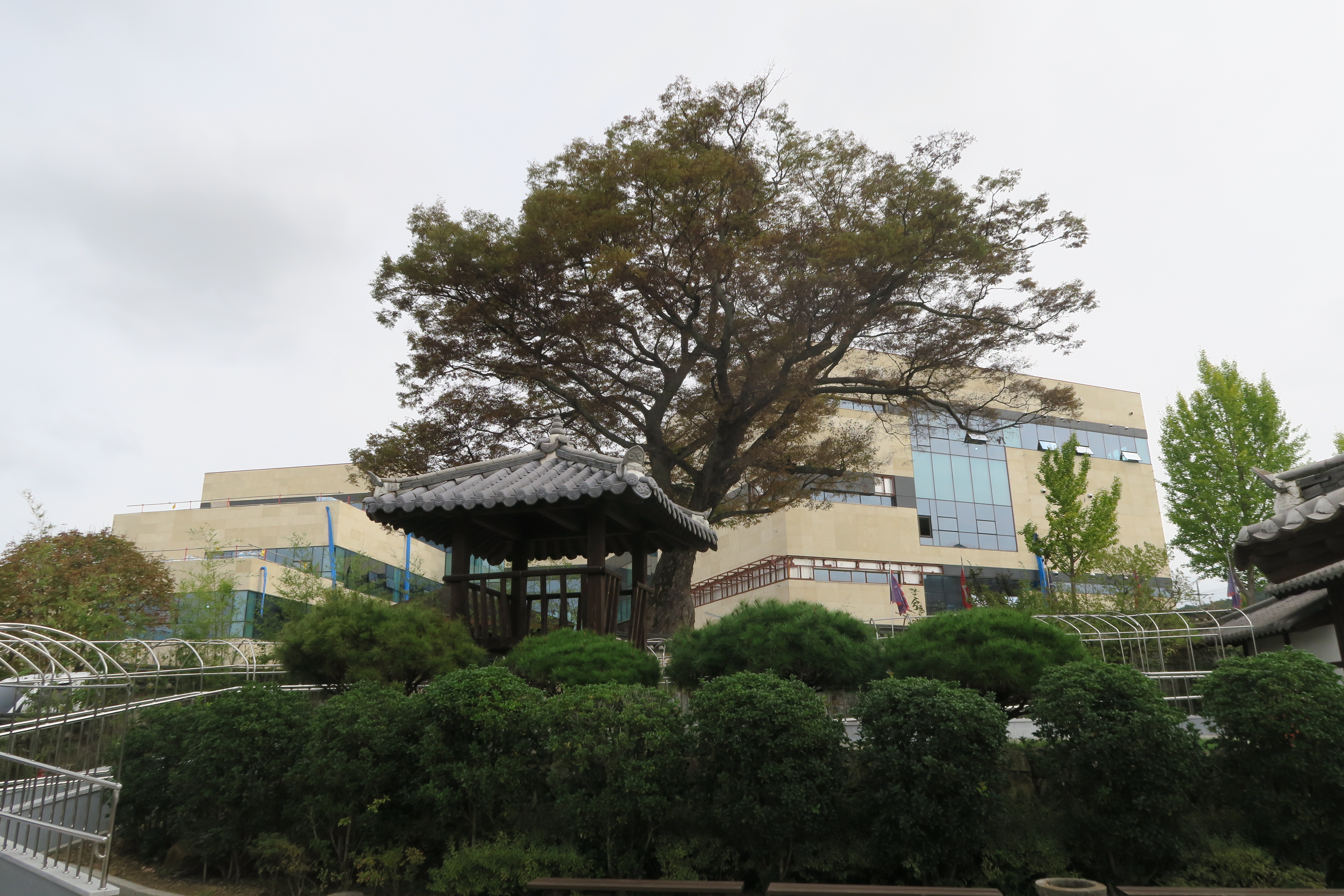 삼국유사 목판사업 기념식수(2015.11.27.) 르 클레지오, 경상북도지사 김관용, 군위군수 김영민.
