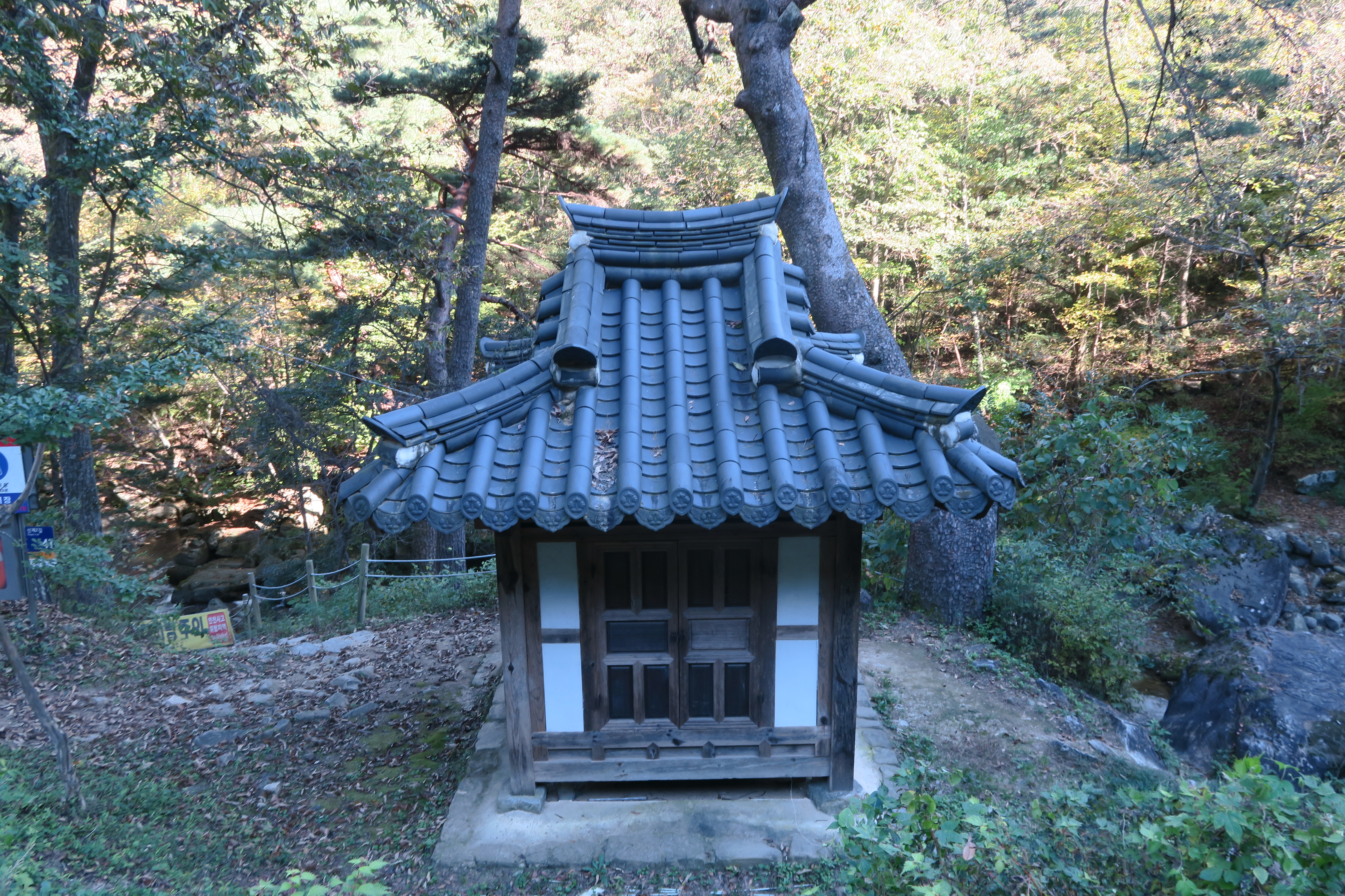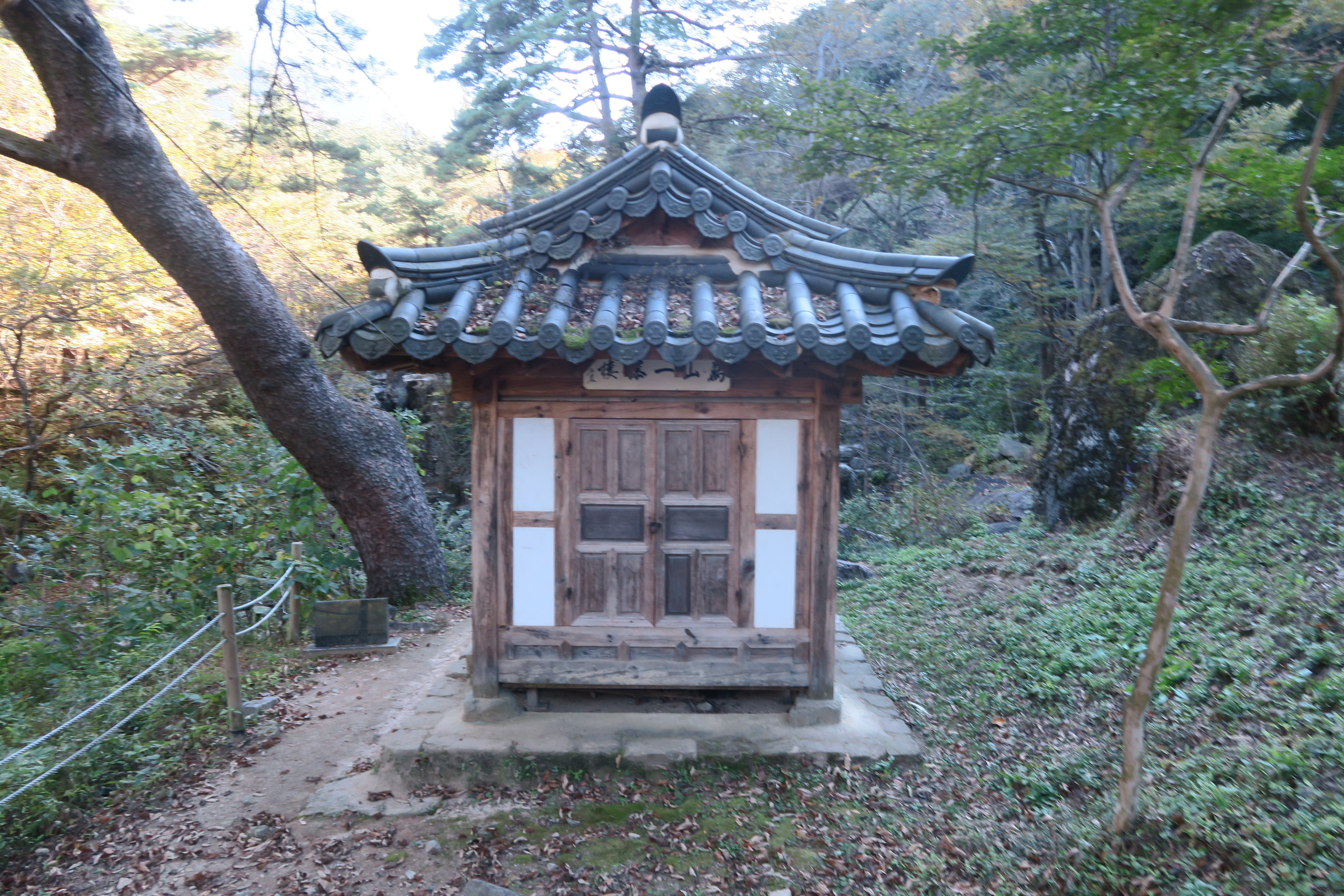 만산일폭루 는 정면이 한칸 측면도 한칸인 팔작지붕의 건물이다.