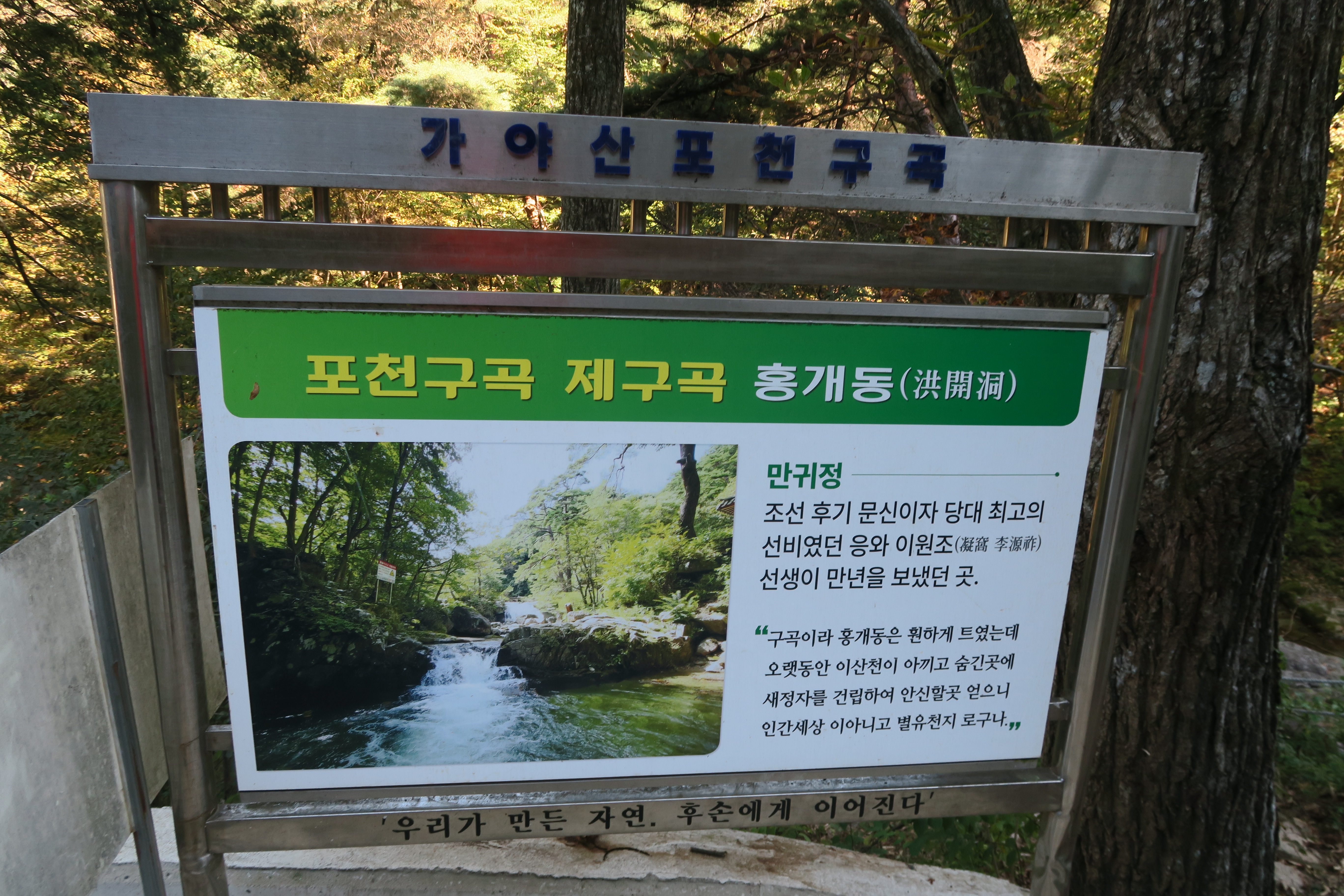응와 이원조 선생이 「포천구곡」이라는 시를 통해 포천계곡의 이름이 탄생, 제9곡 인 홍개동 안내문.