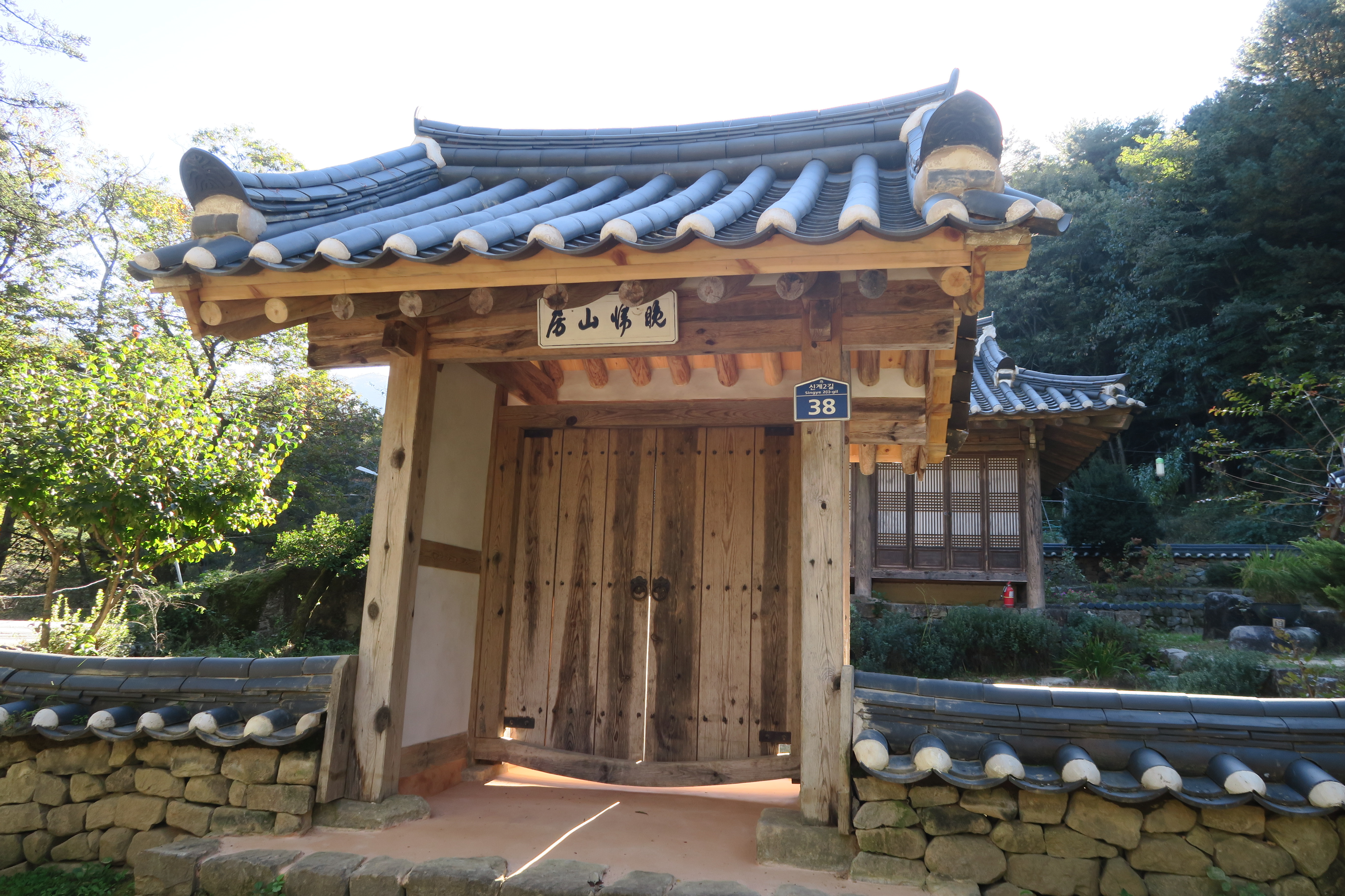자연친화적인 돌담장과 후손이 거처하는 관리사 건물.