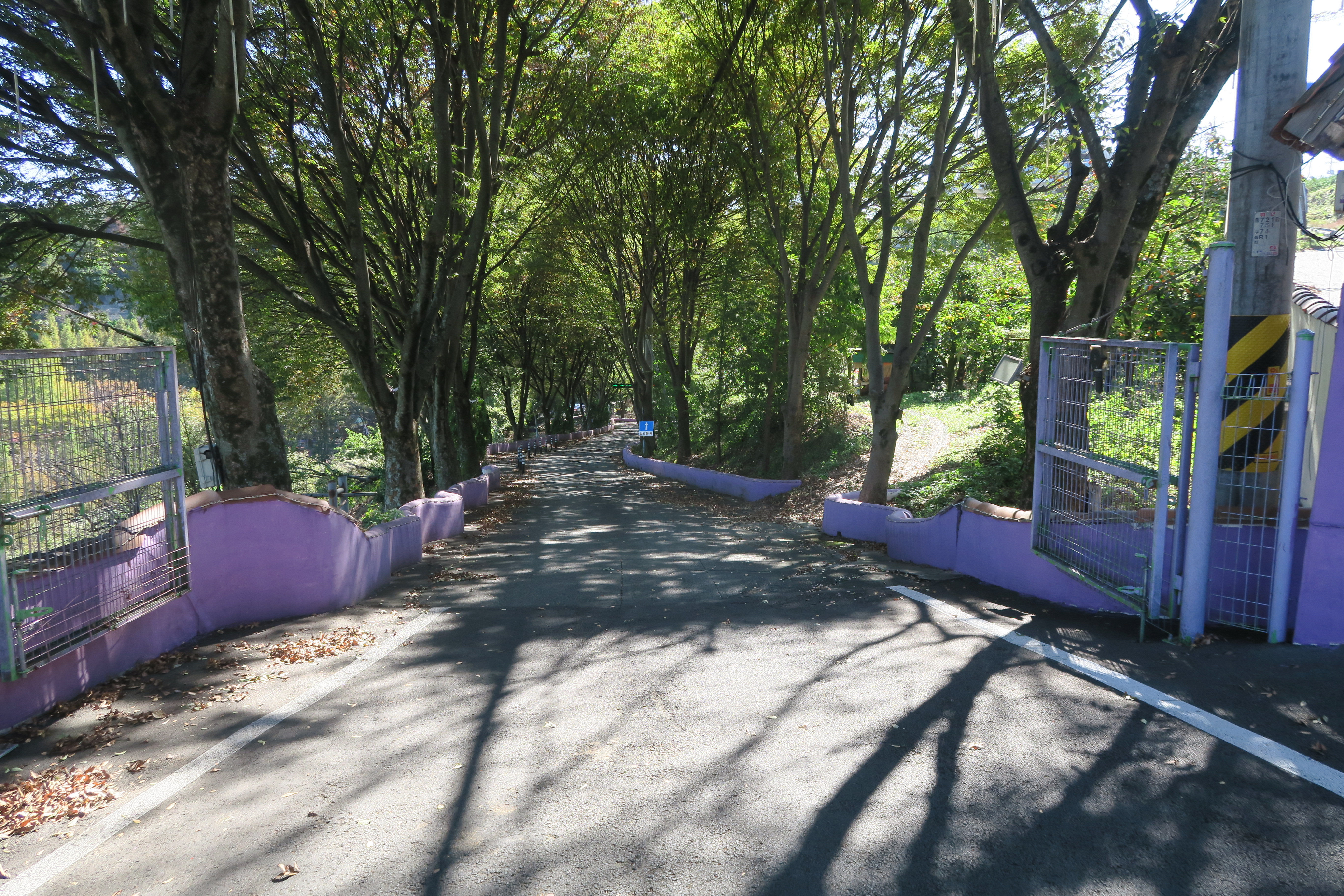 보라색 으로 물들인 입구 도로 따라 내려간다.