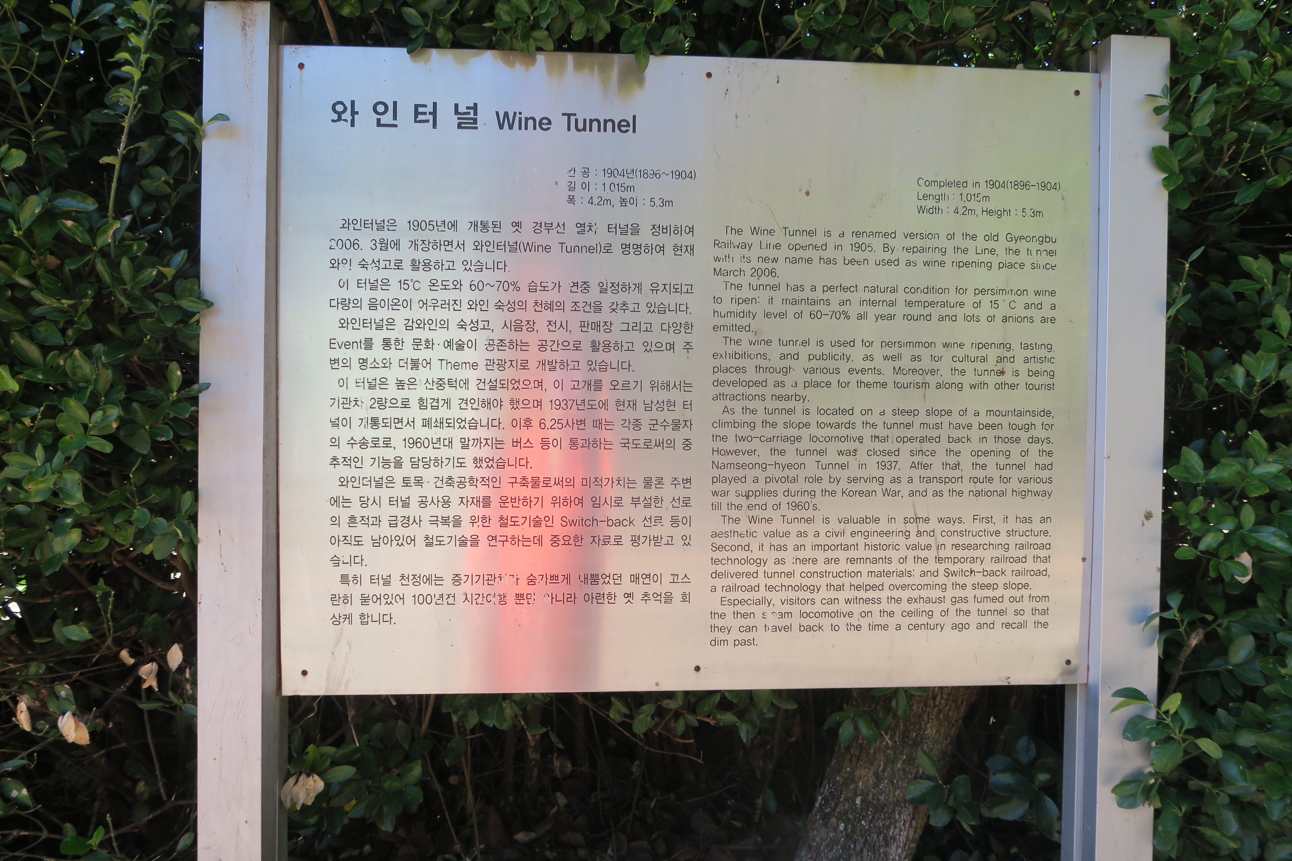 일제강점기시절 1896~1904 장장 9년간 조선인들의 피와 땀으로 이루어진 길이 1015m, 폭4.2m, 높이 5.3m,의 옛 경부선 열차 터널을 정비, 2006년 3월에 와인터널로 개장 되었다.