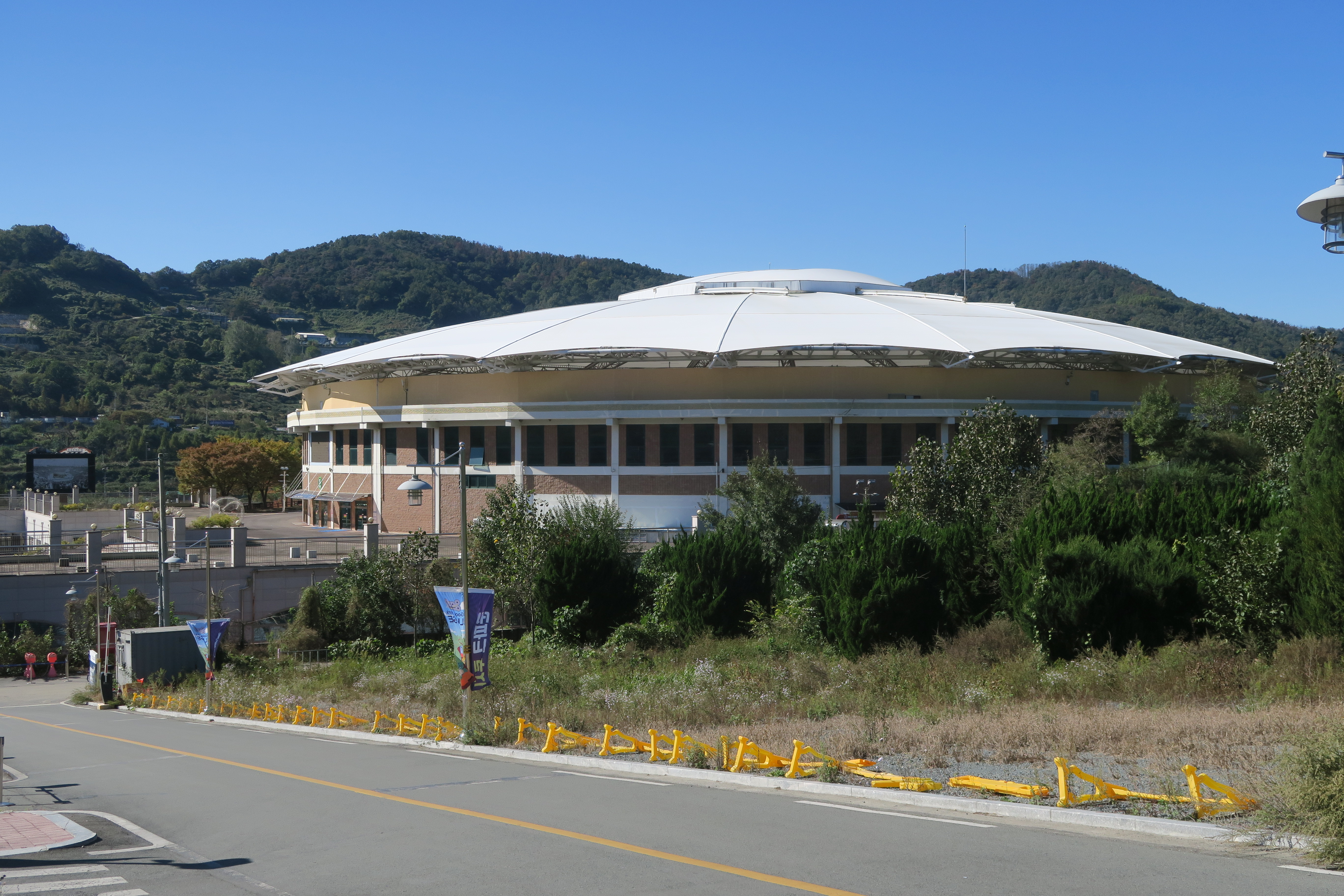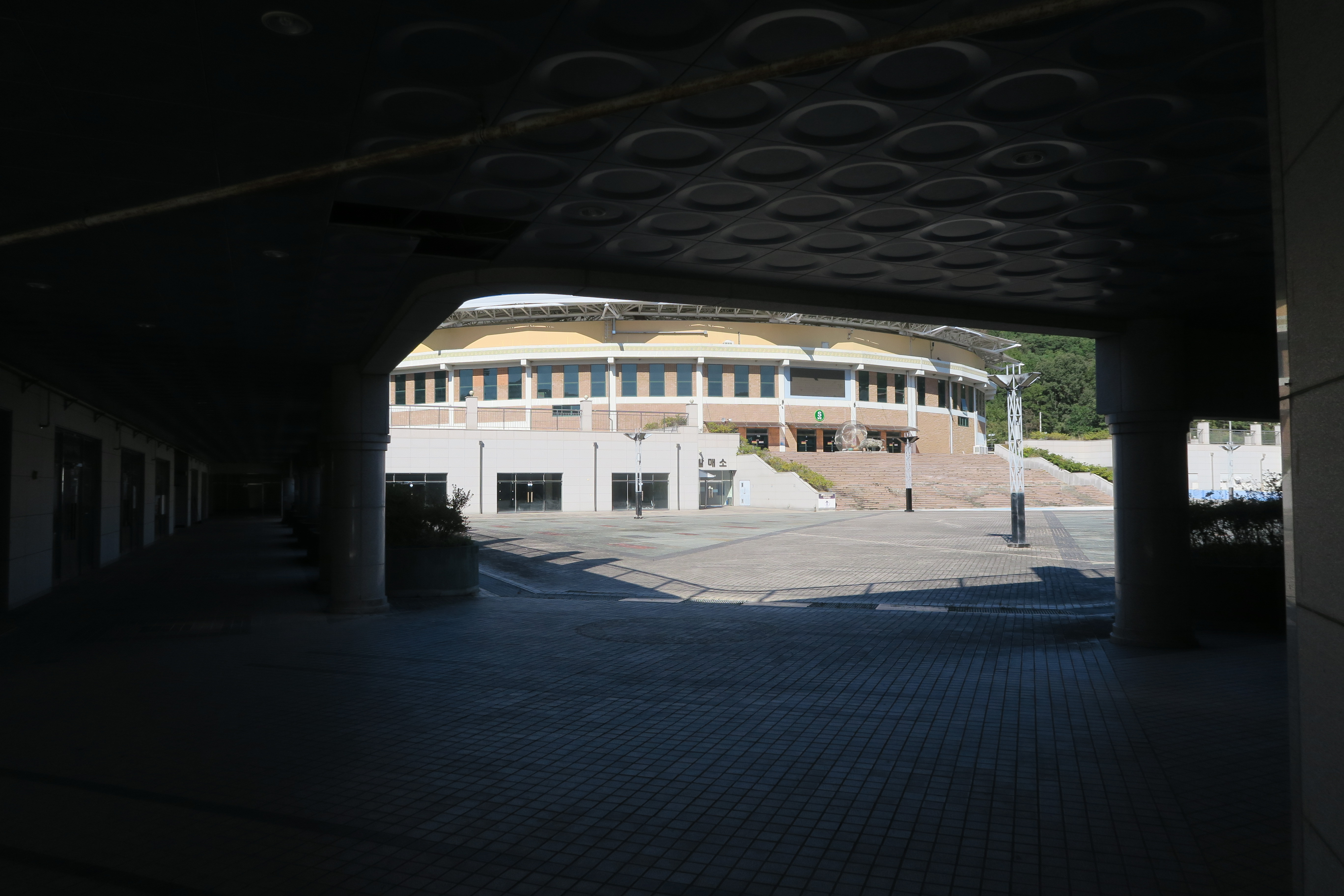 계단을 오르고나니 경기장 돔이 비친다.