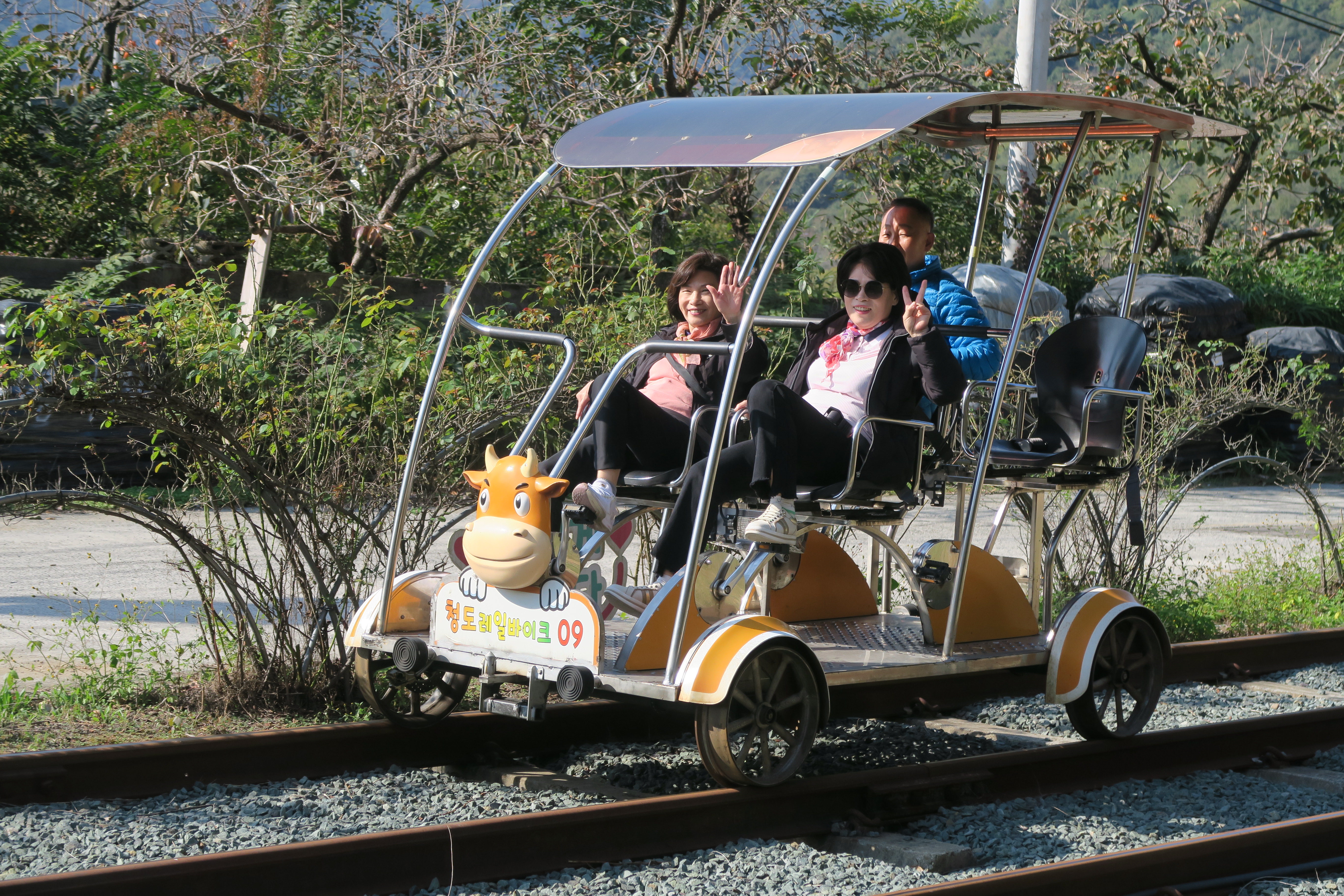 한참만에 보는 레일바이크 를 타고 가는 탐방객분.