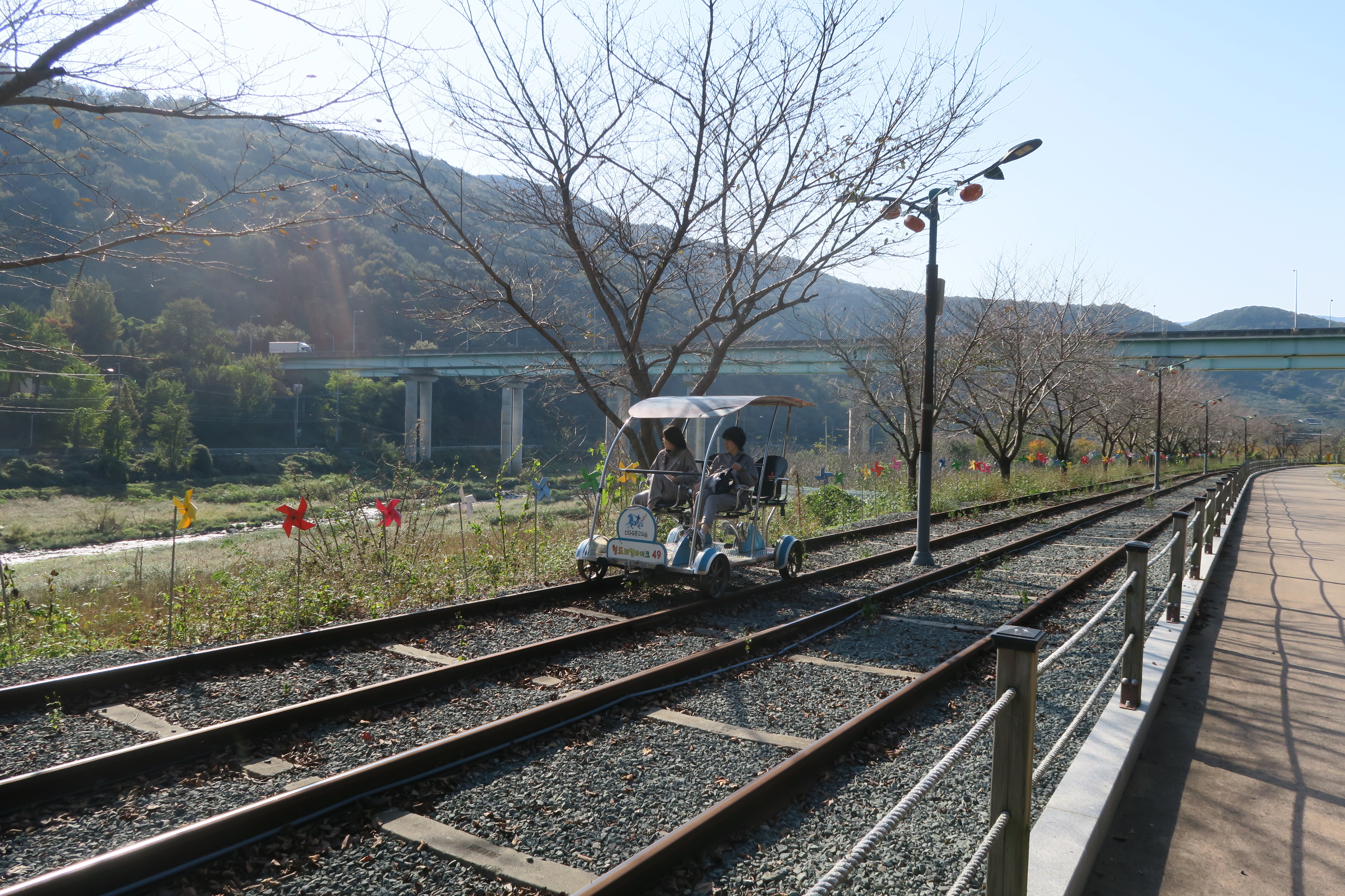 시조공원을 지나니 청도 레일바이크 종착지 반환점.
