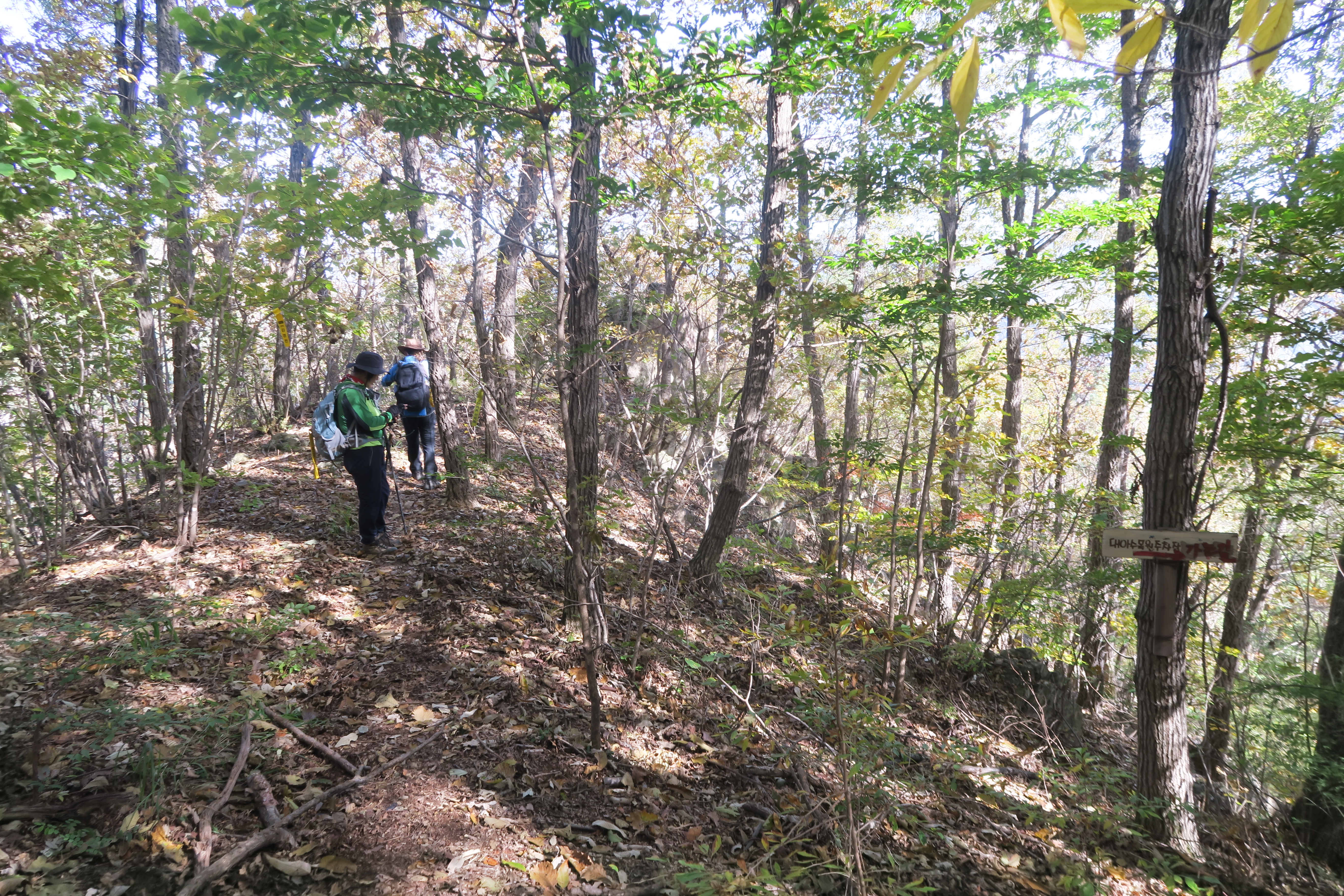 대아수목원 주차장 팻말로 하산 하였으나 다시 원점회귀, 바로 직진 한다.