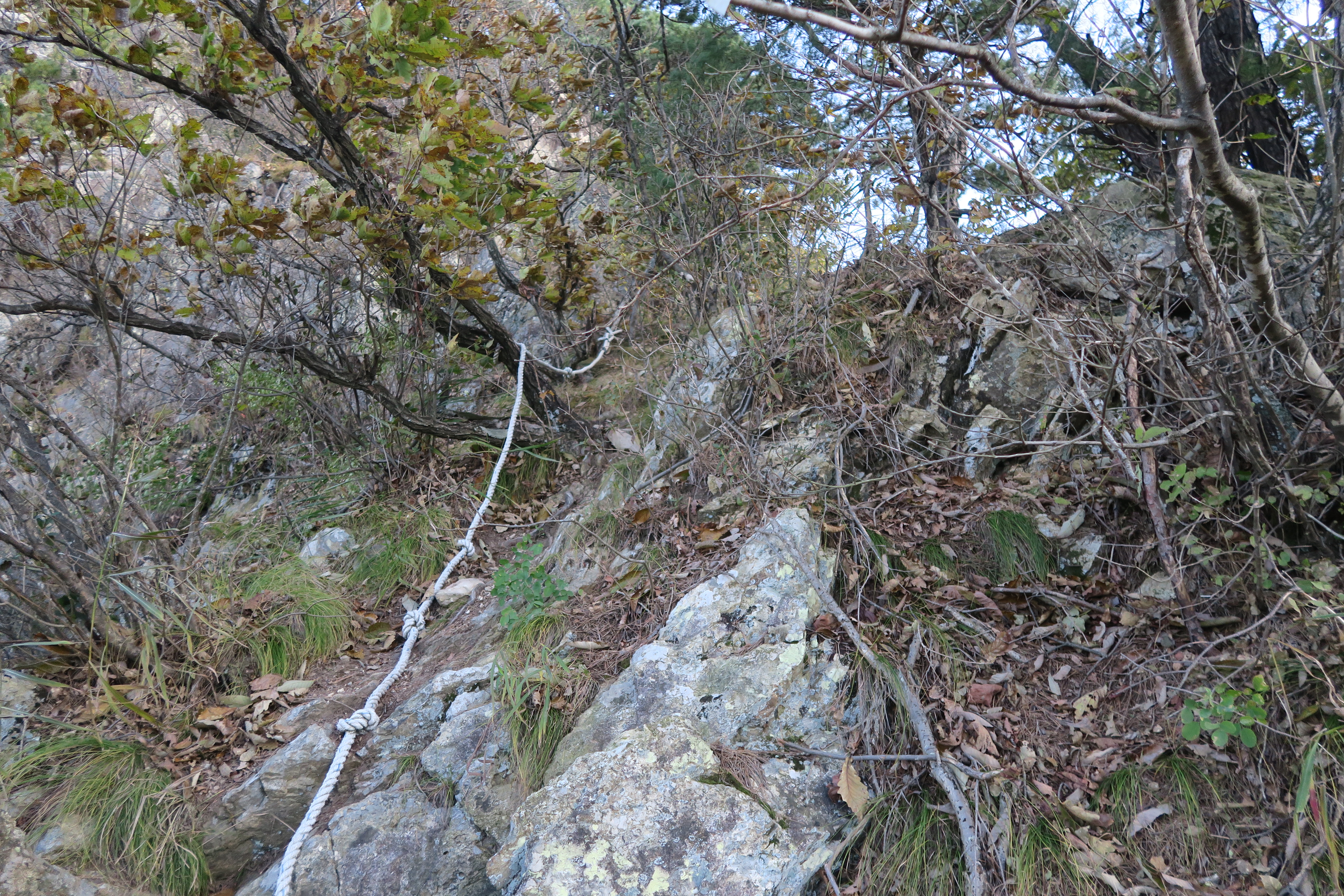 안전밧줄을 잡고 오르며.