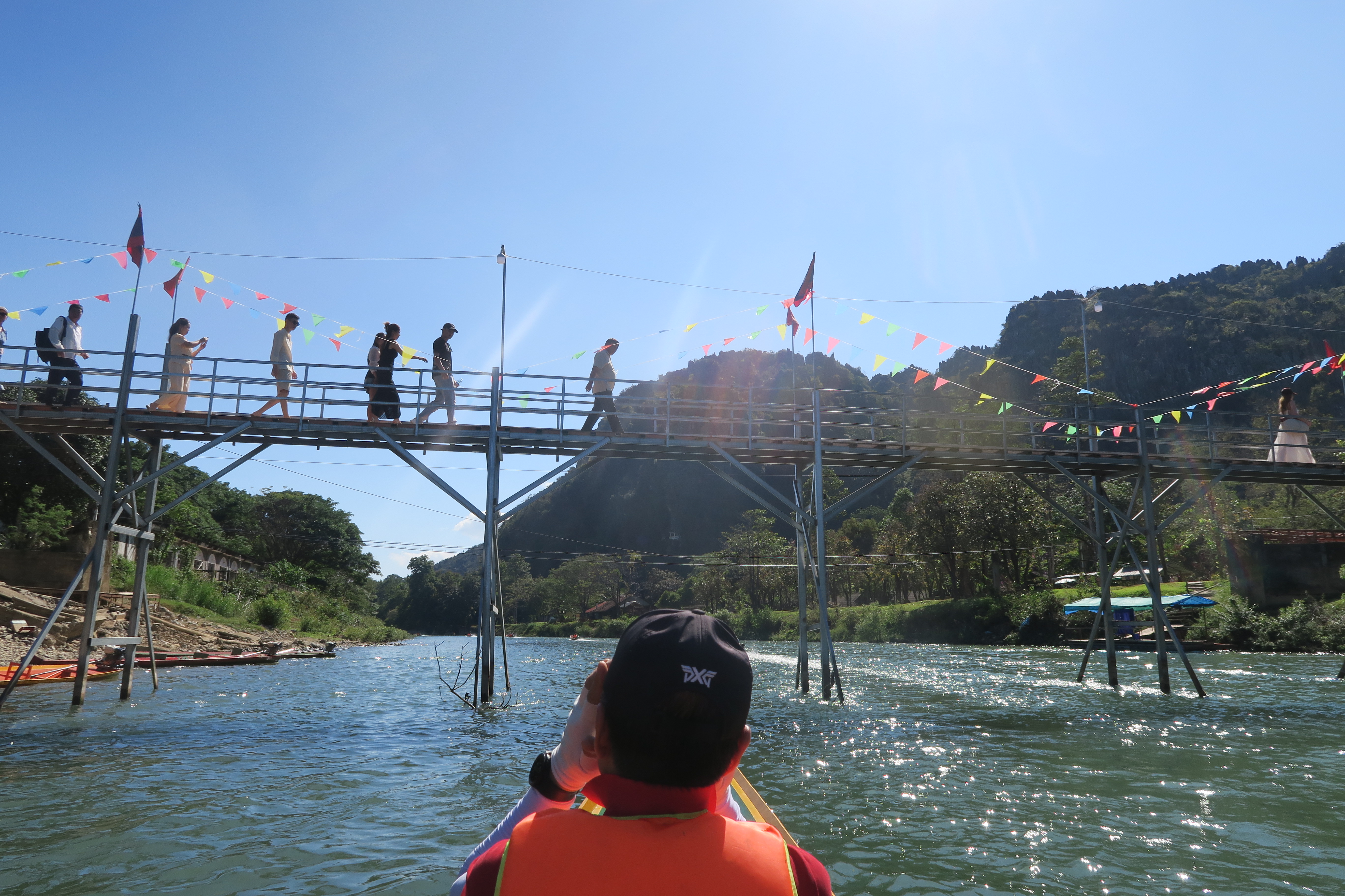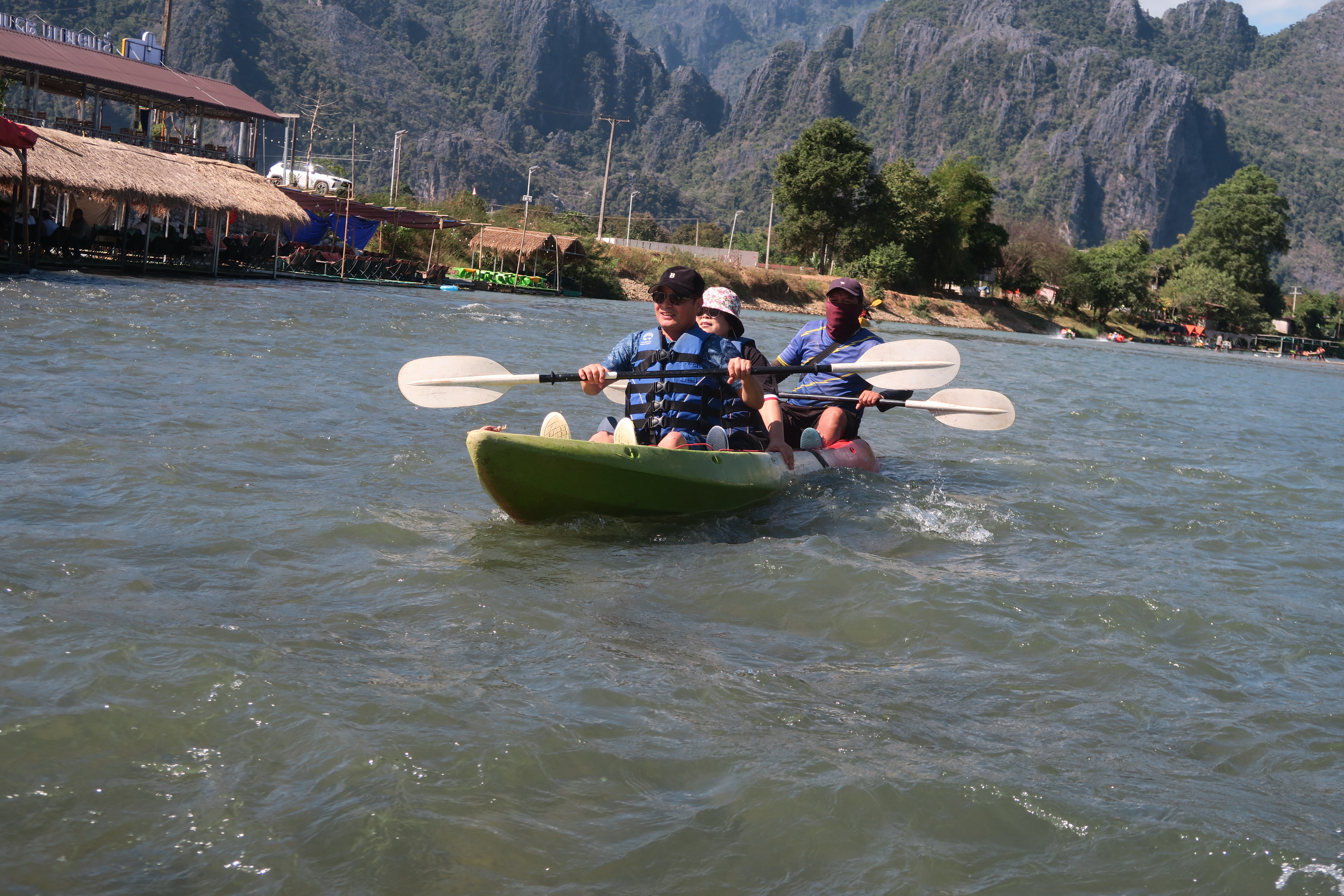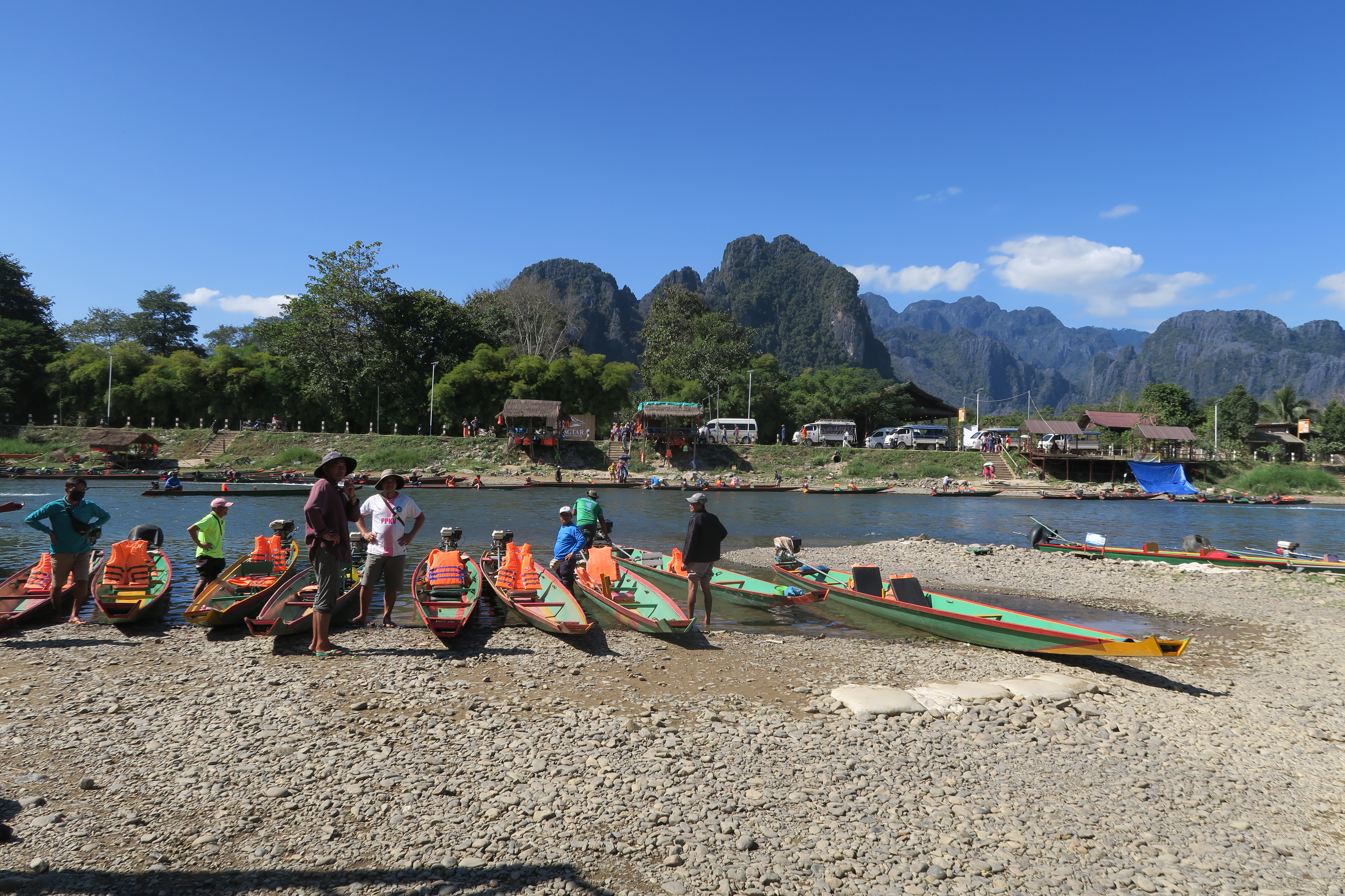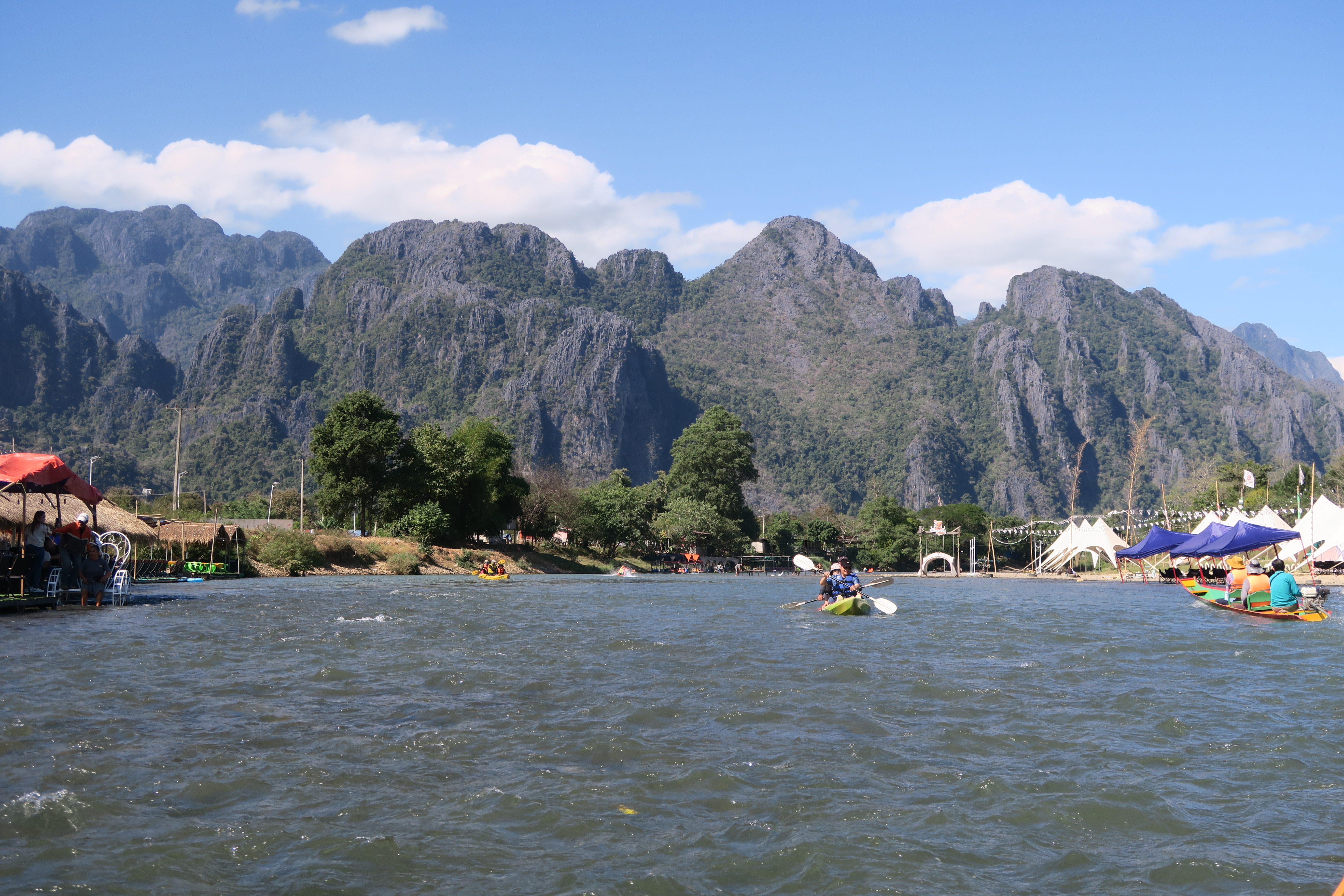 방비엔 역, 많은 외국인들이 관광하려왔다.