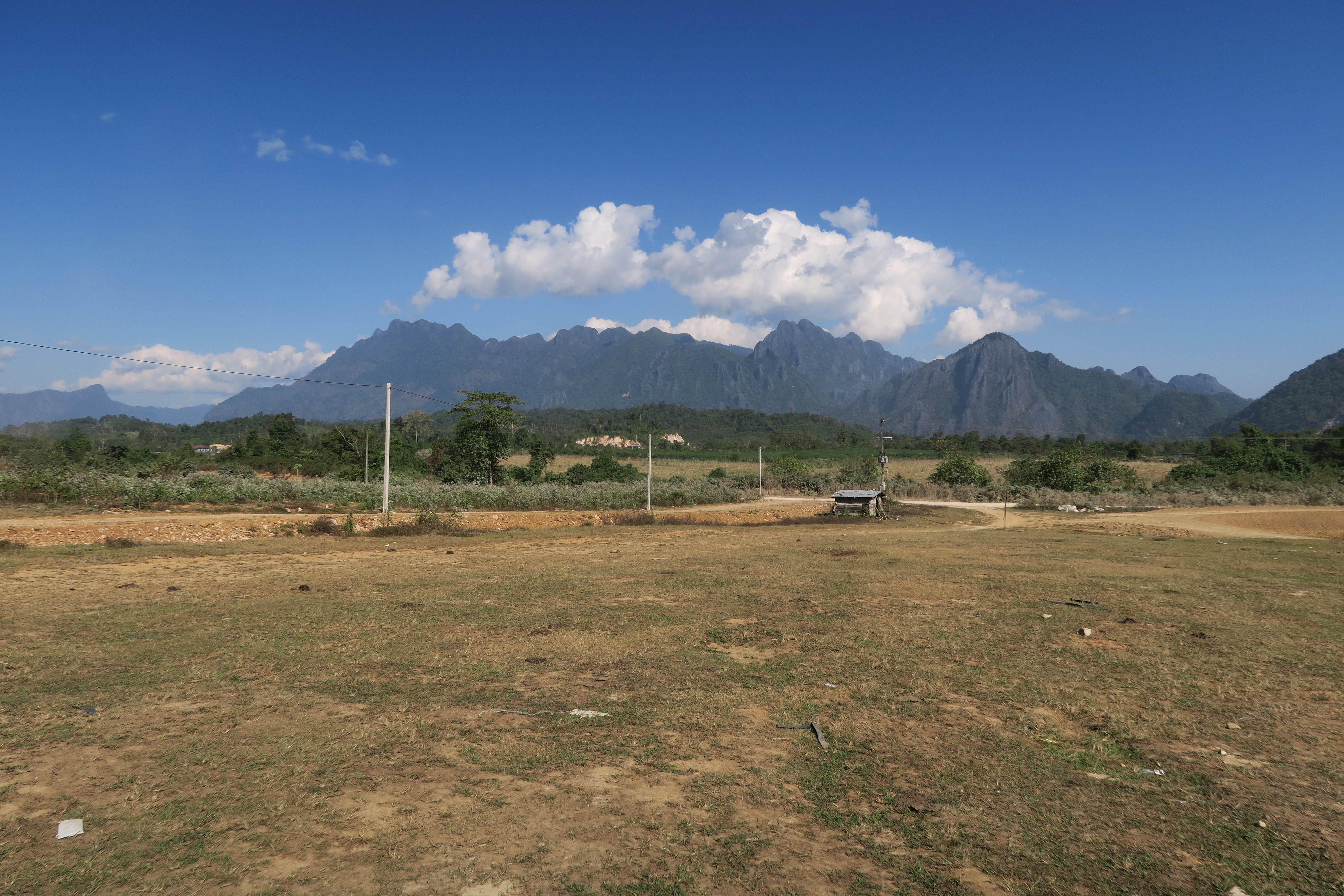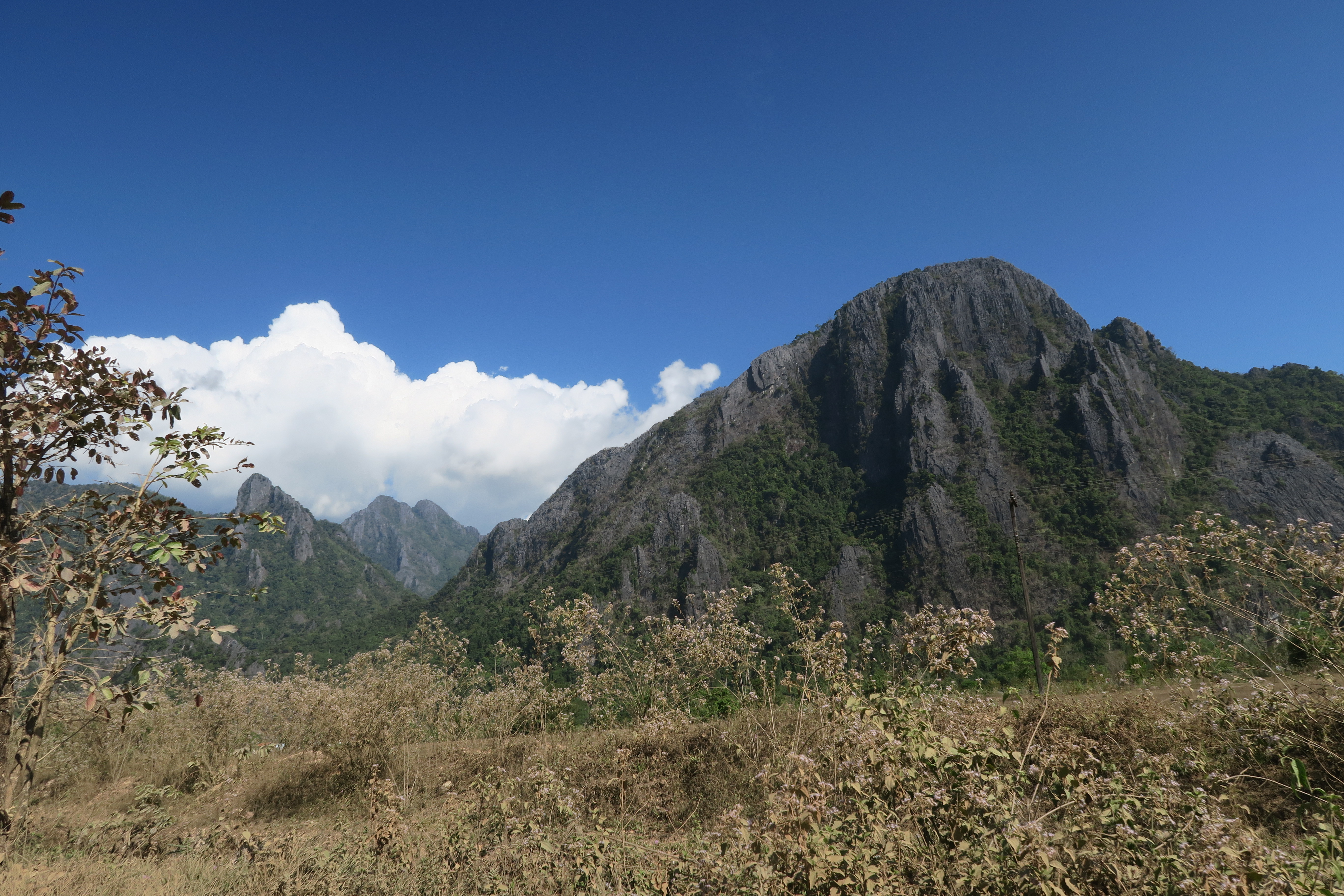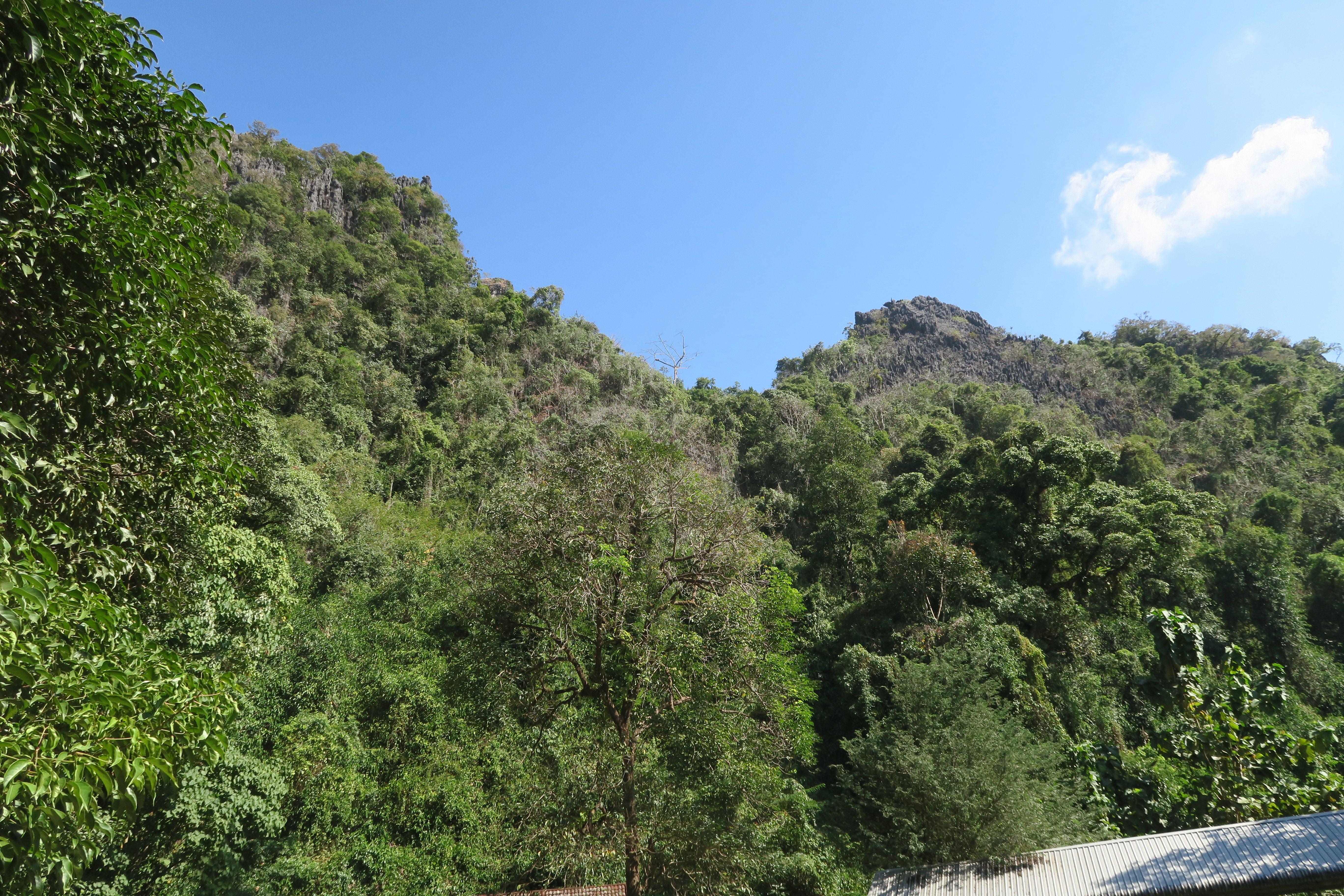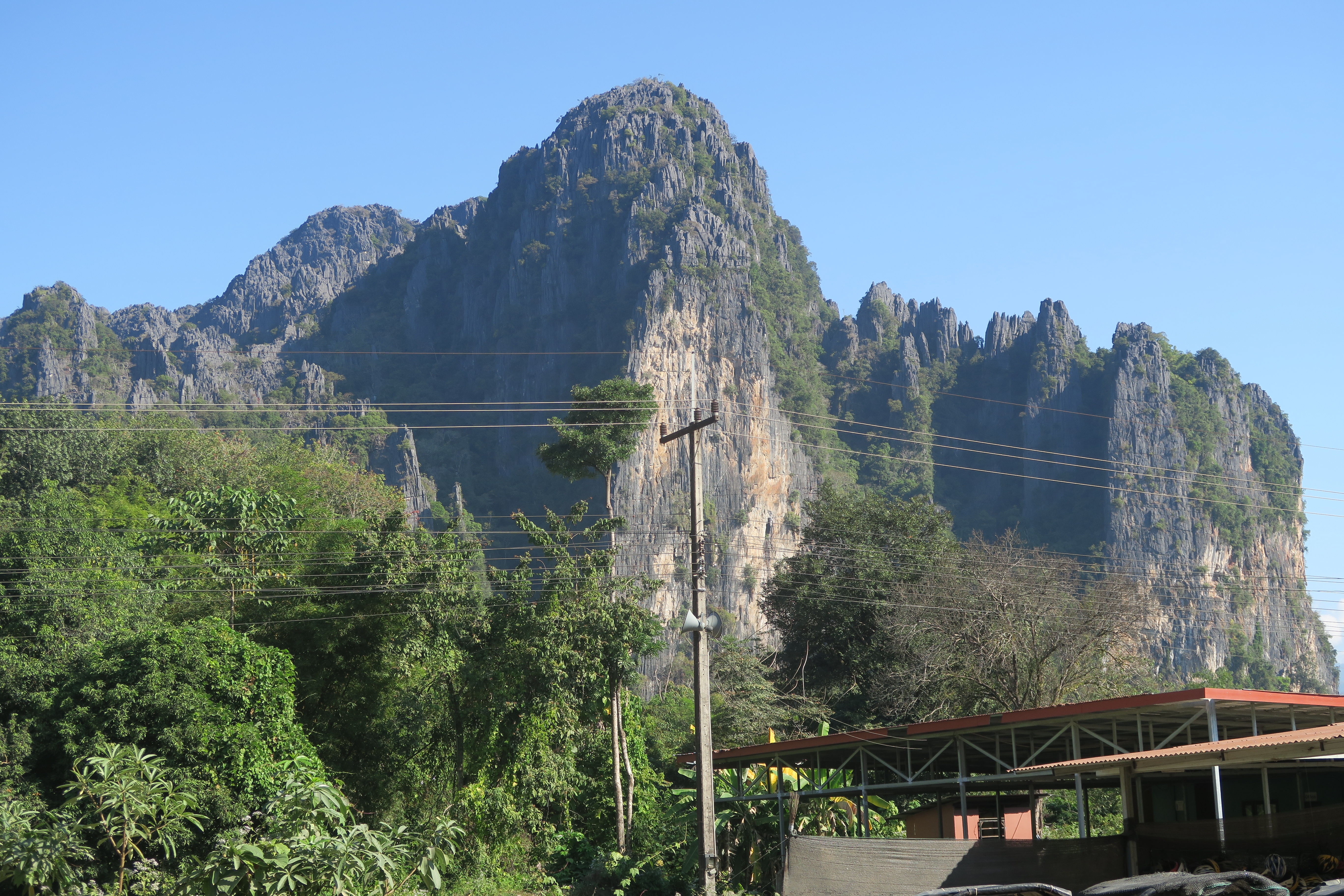 전면에는 바위산 능선이 펼쳐지고 그 아래는 쏭강이 흐르고 있다.