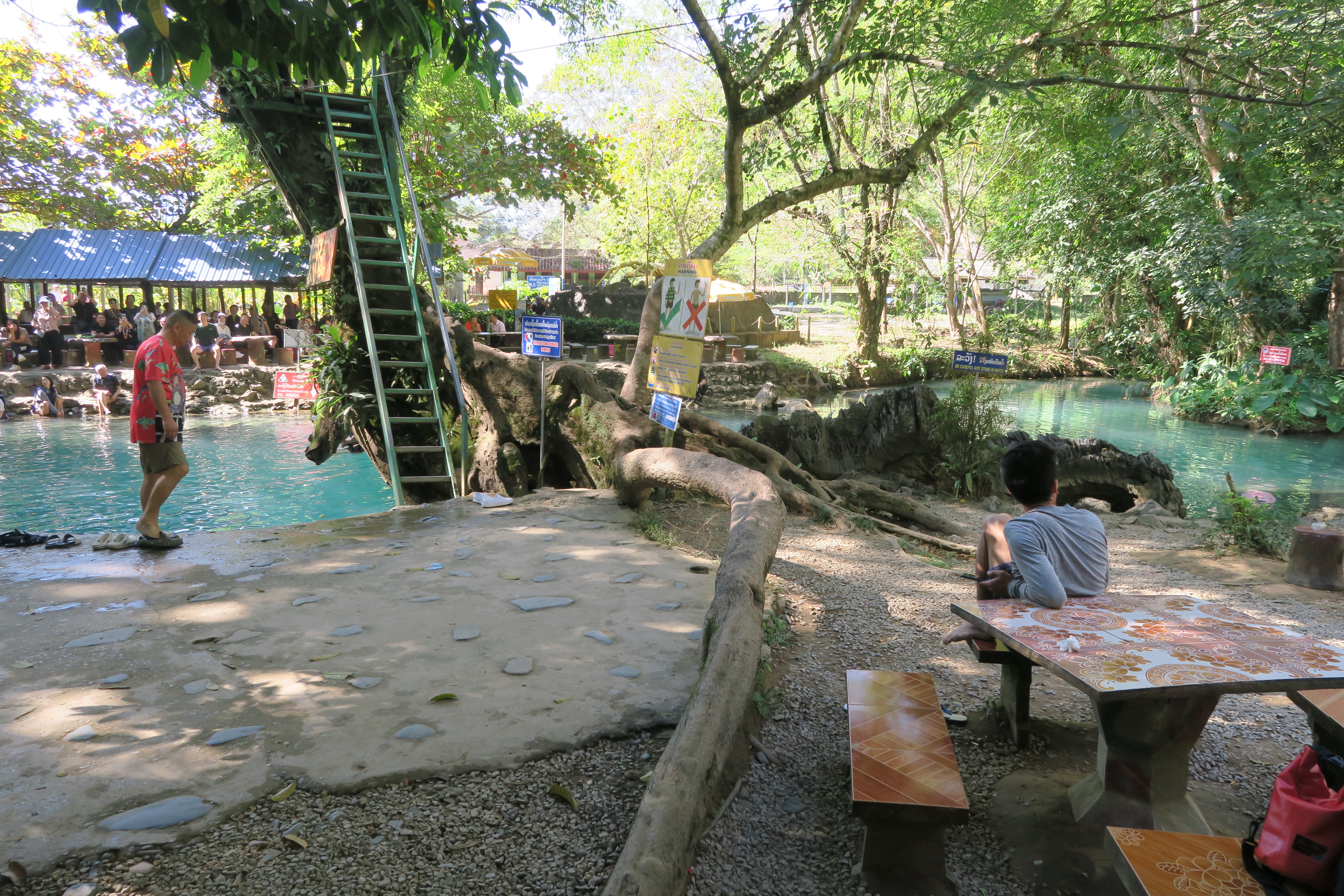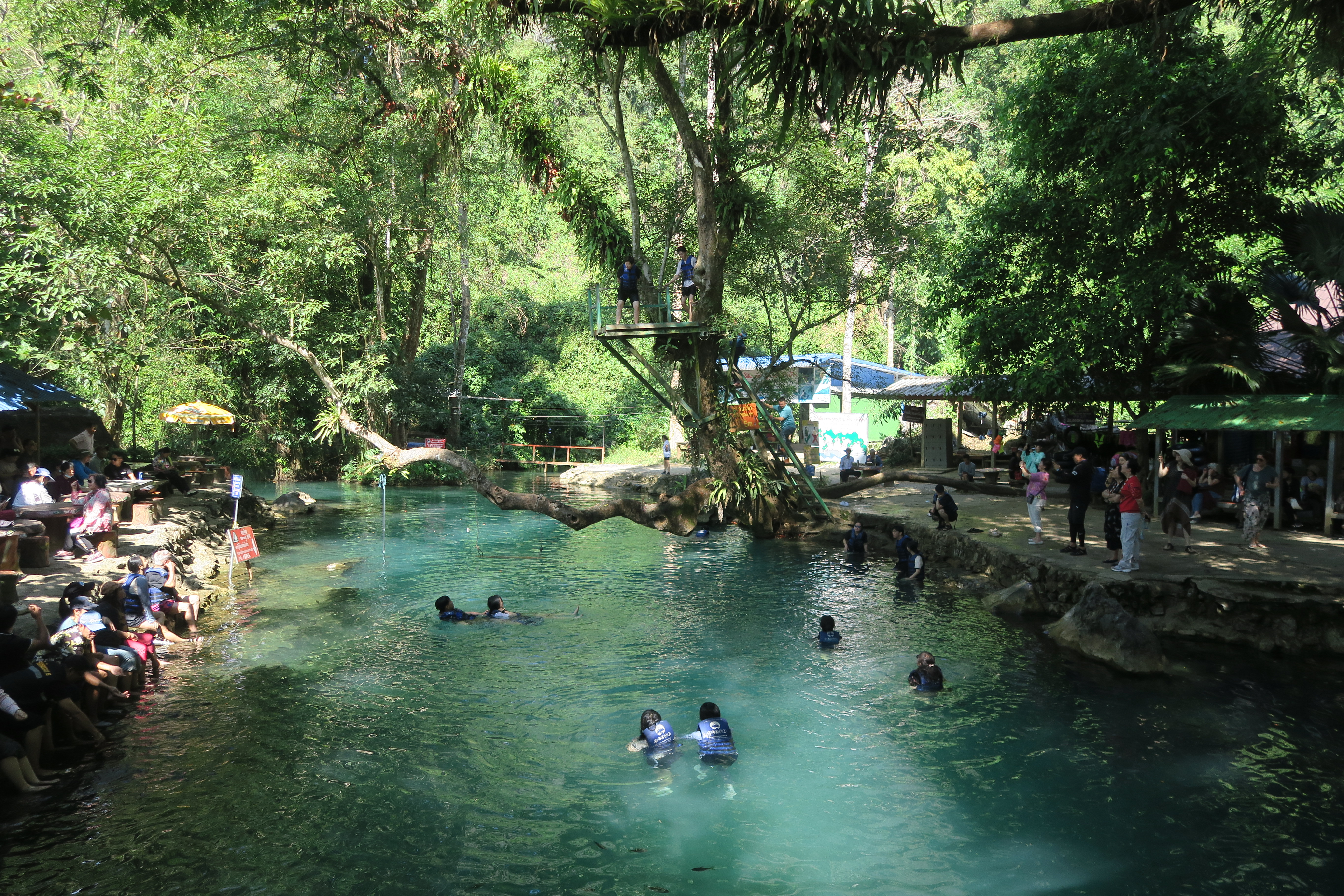 아는 형님2 바로 아래로 다이빙, 석회석 물이라 가라 앉기 때문에 구명조끼는 필수 착용.