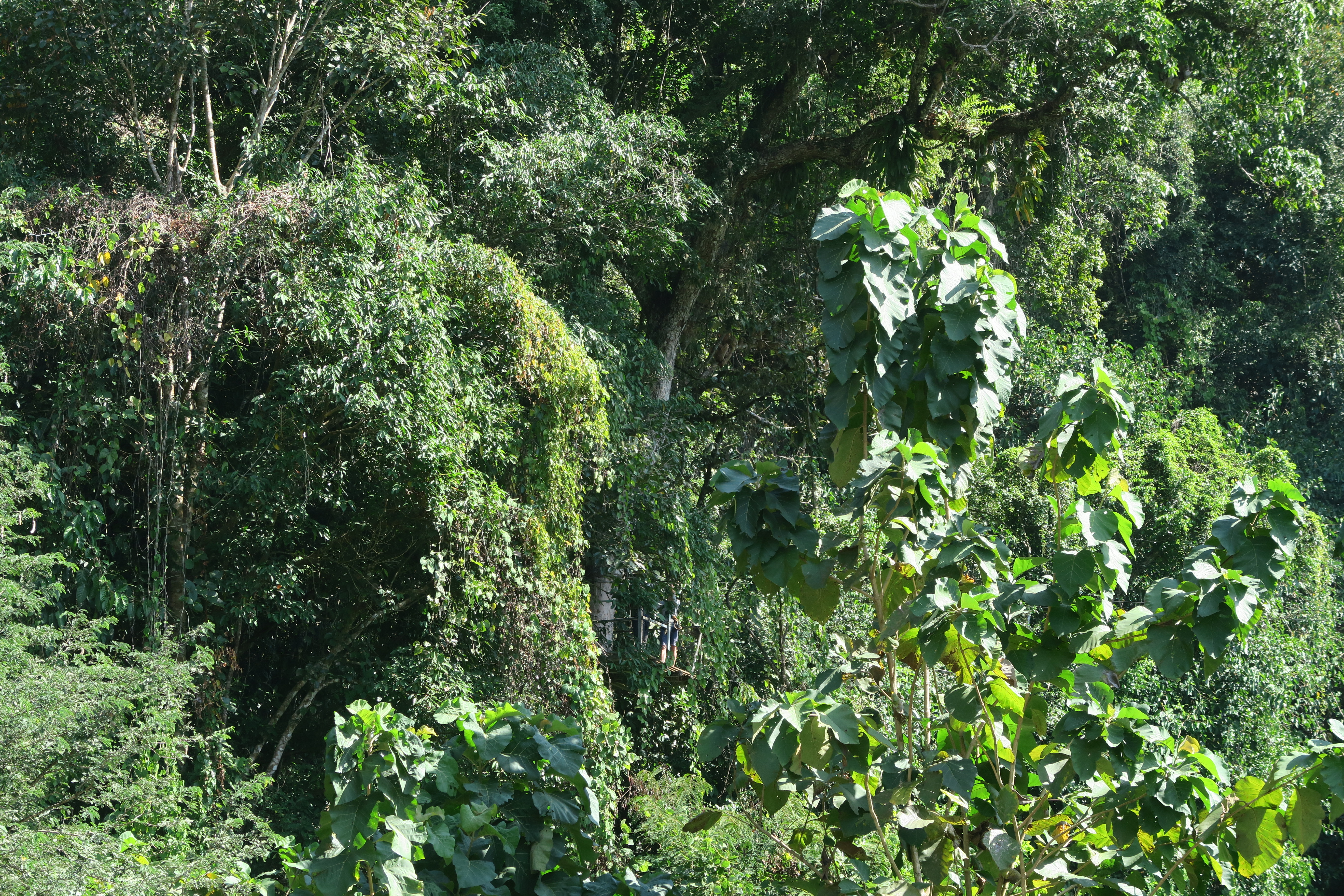 열대우림 숲 속에 짚 라인 출발장소.