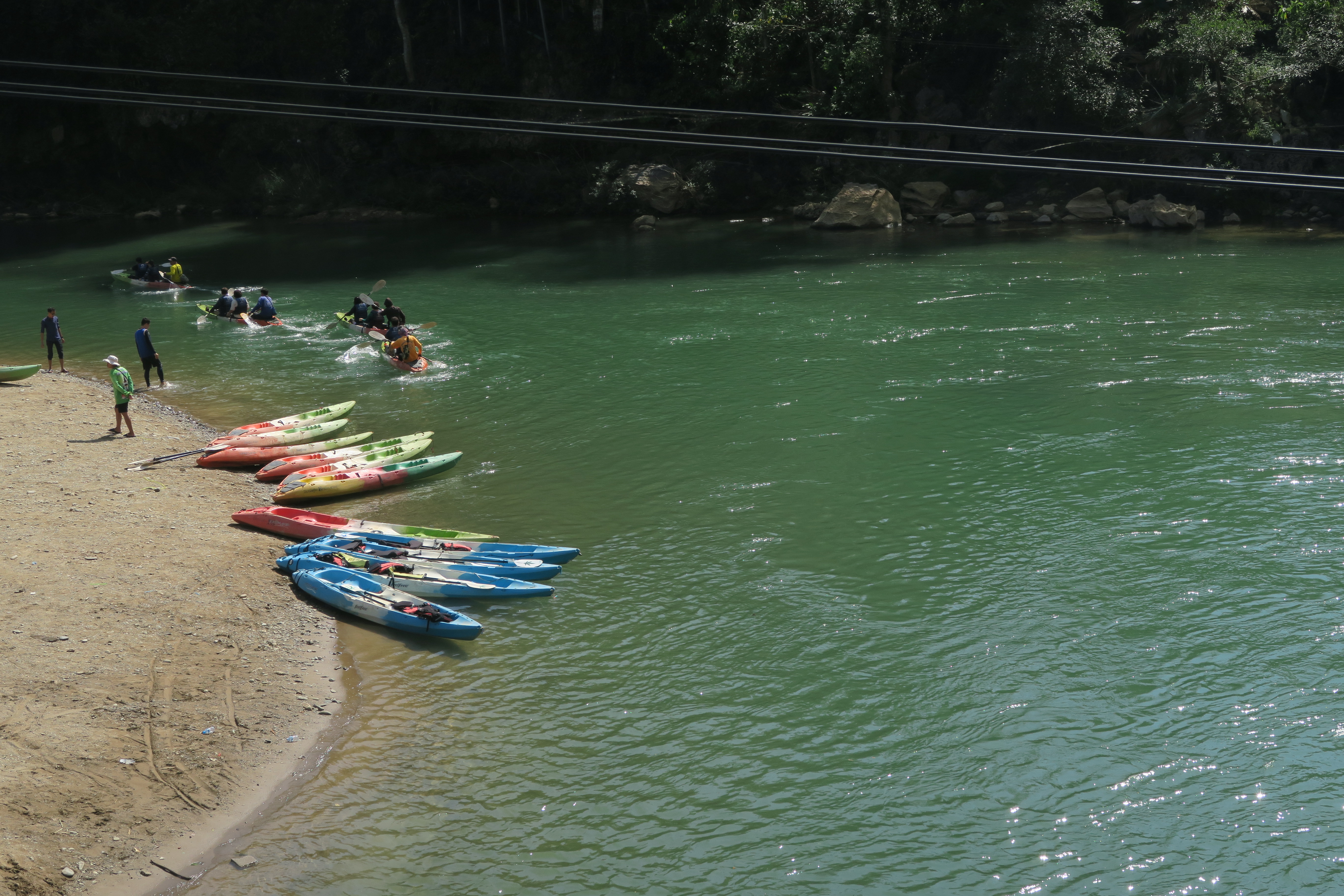 카야킹 (래프팅)이 아름다운 남쏭강을 따라 내려간다.
