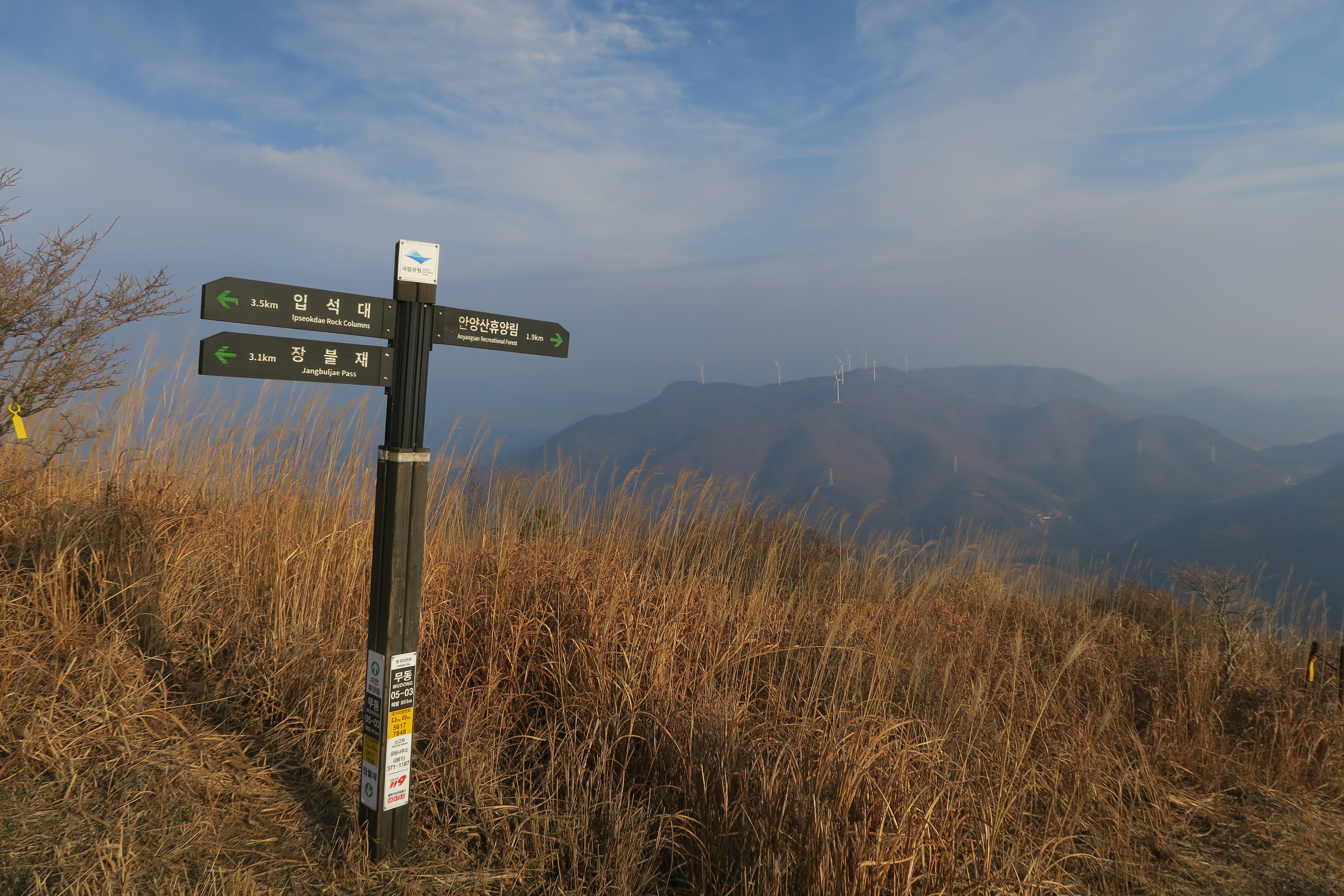 장불재-석굴암 갈림길 이정표.