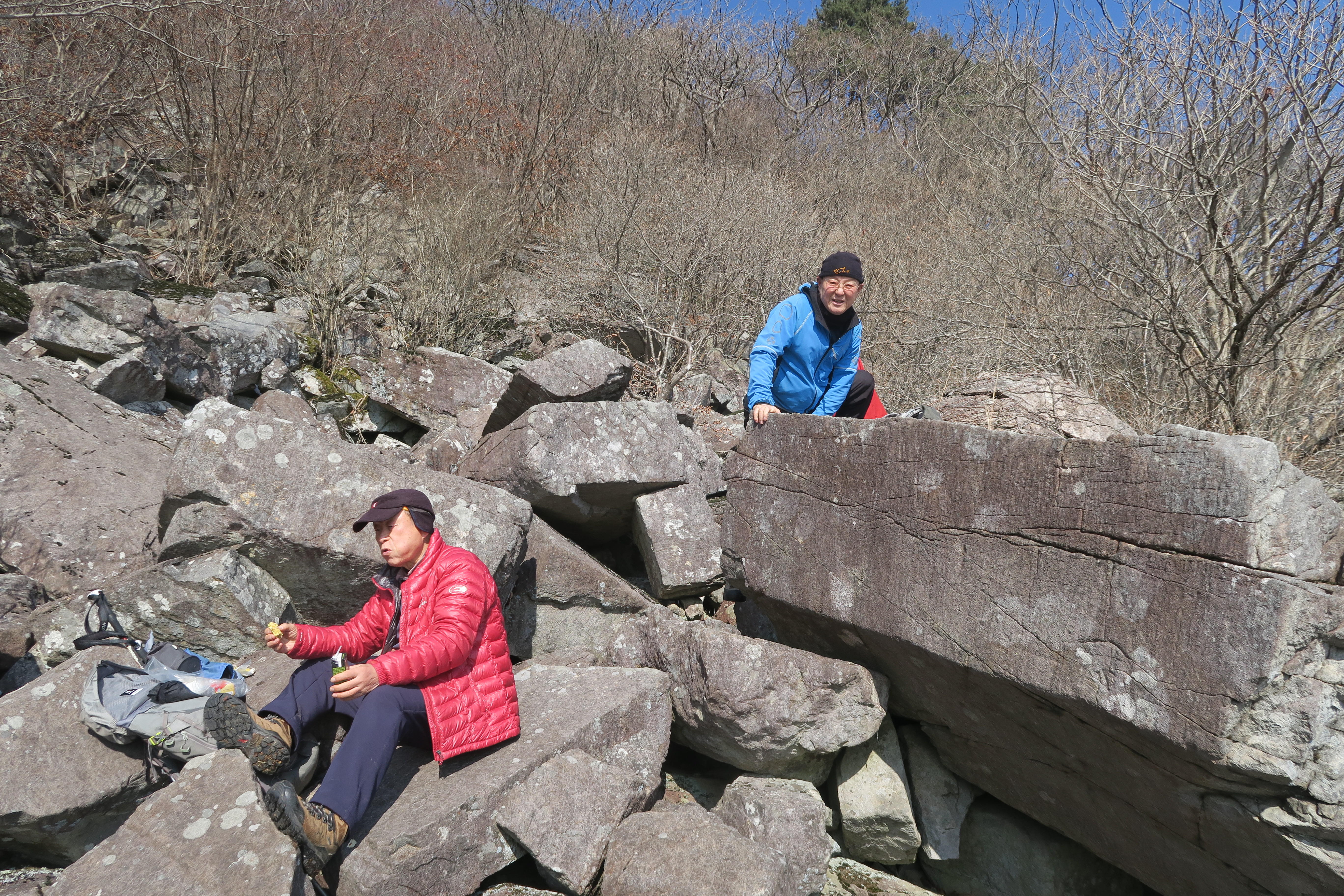 규봉암에서 조금 벗어난 너덜지대에서 점심을 시식한다.