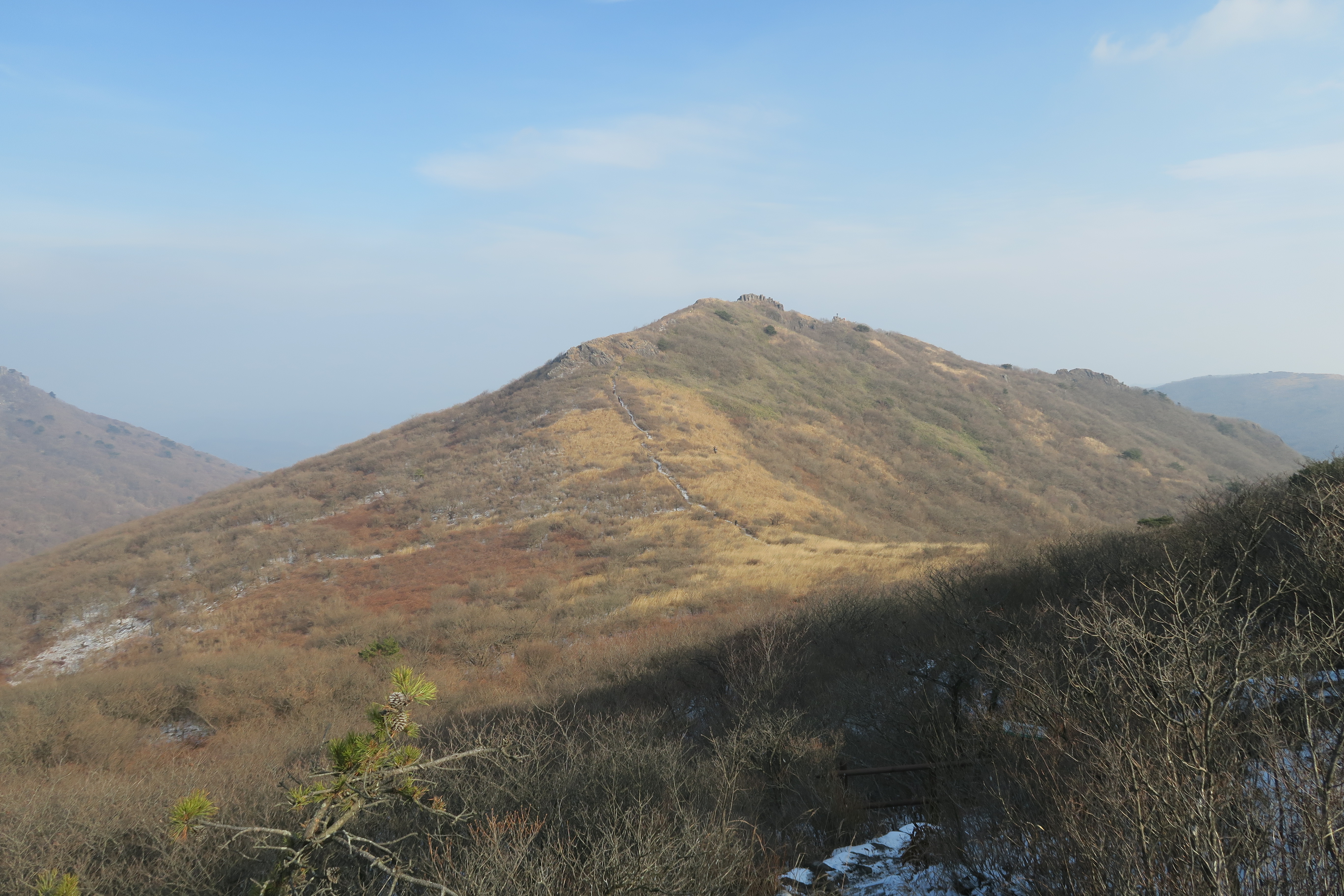 가운데 능선이 장불재.