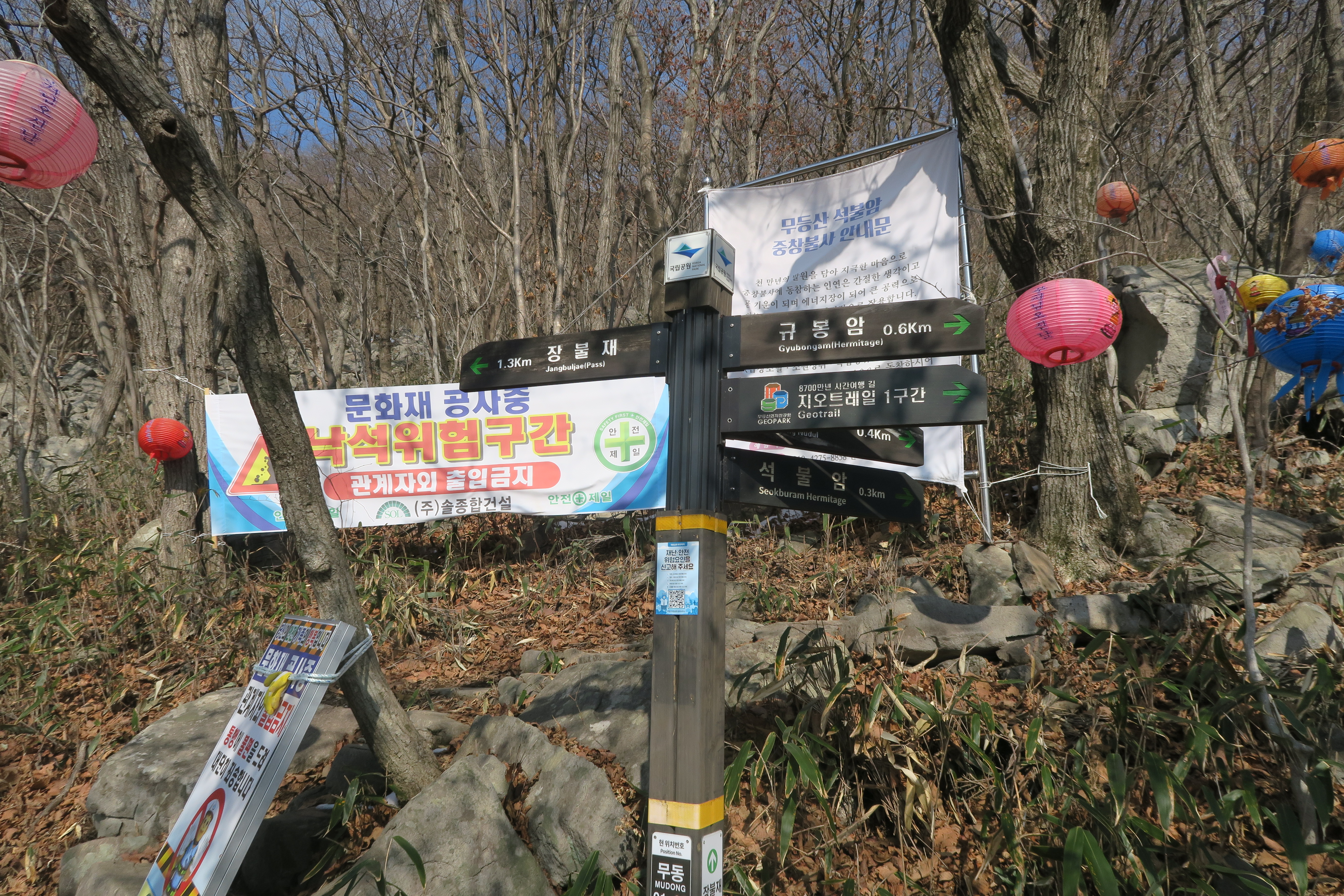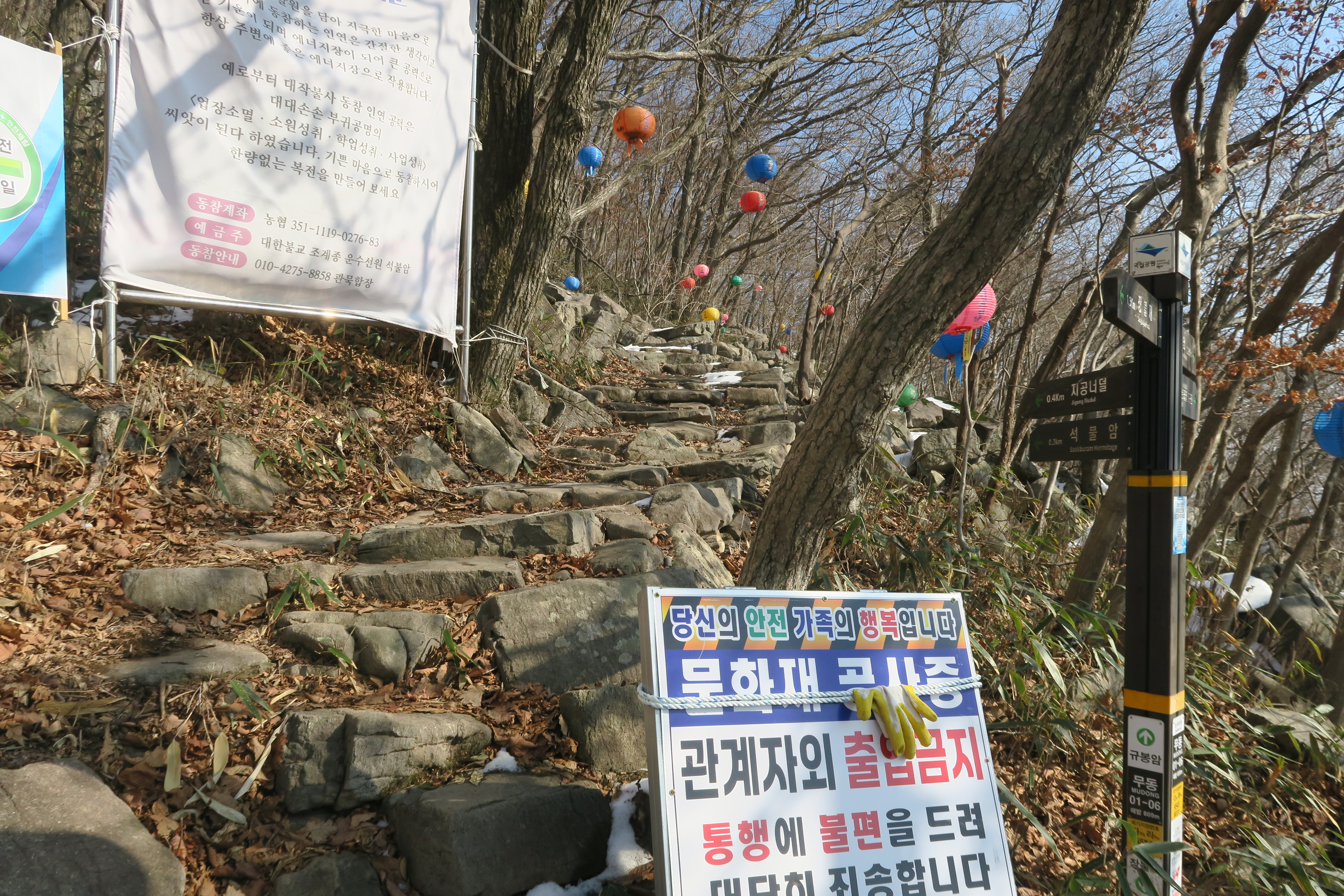 석암가는길 은 문화재 공사중 이라 출입금지 안내문.