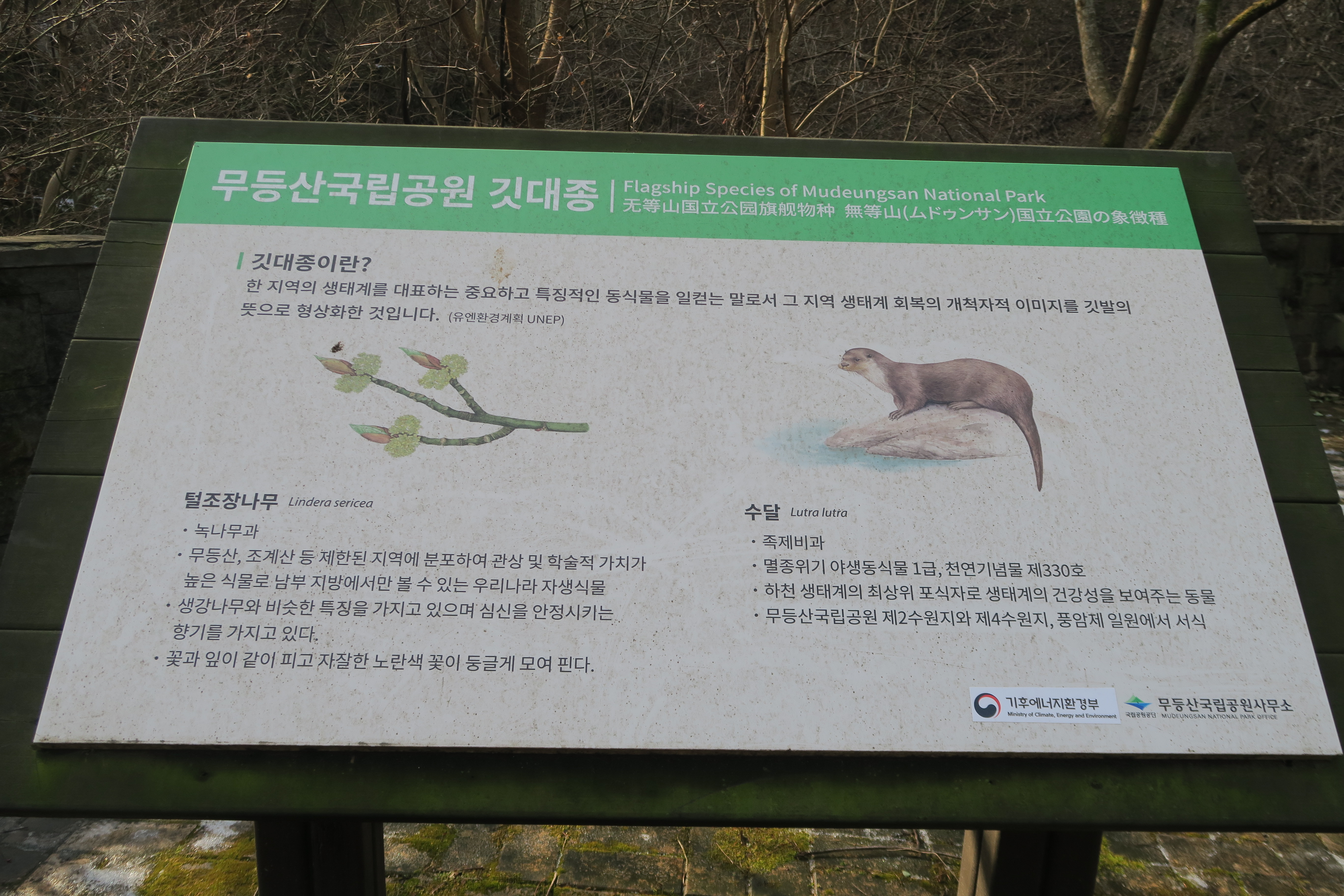 깃대종인 털조장 나무와 수달.