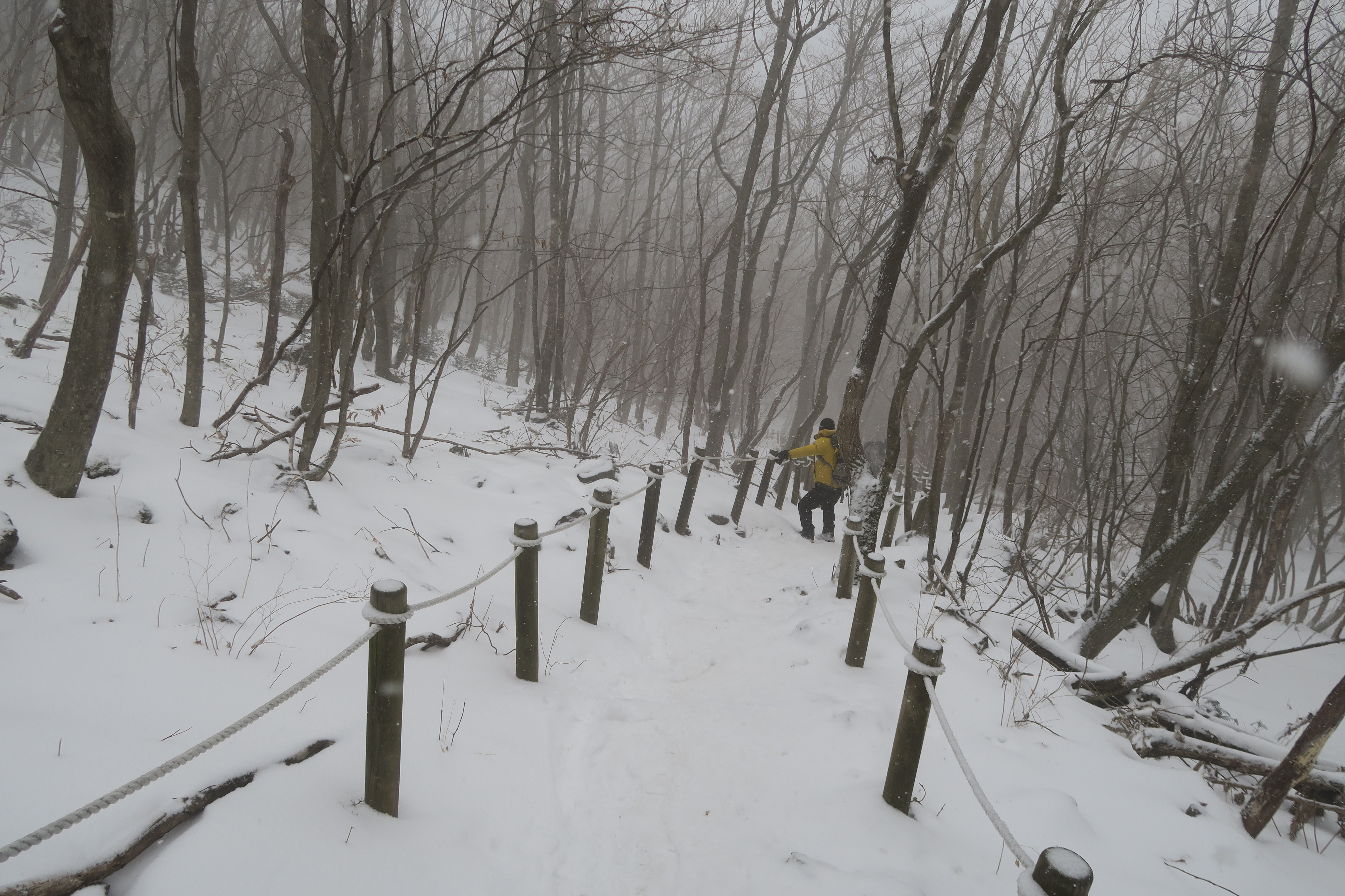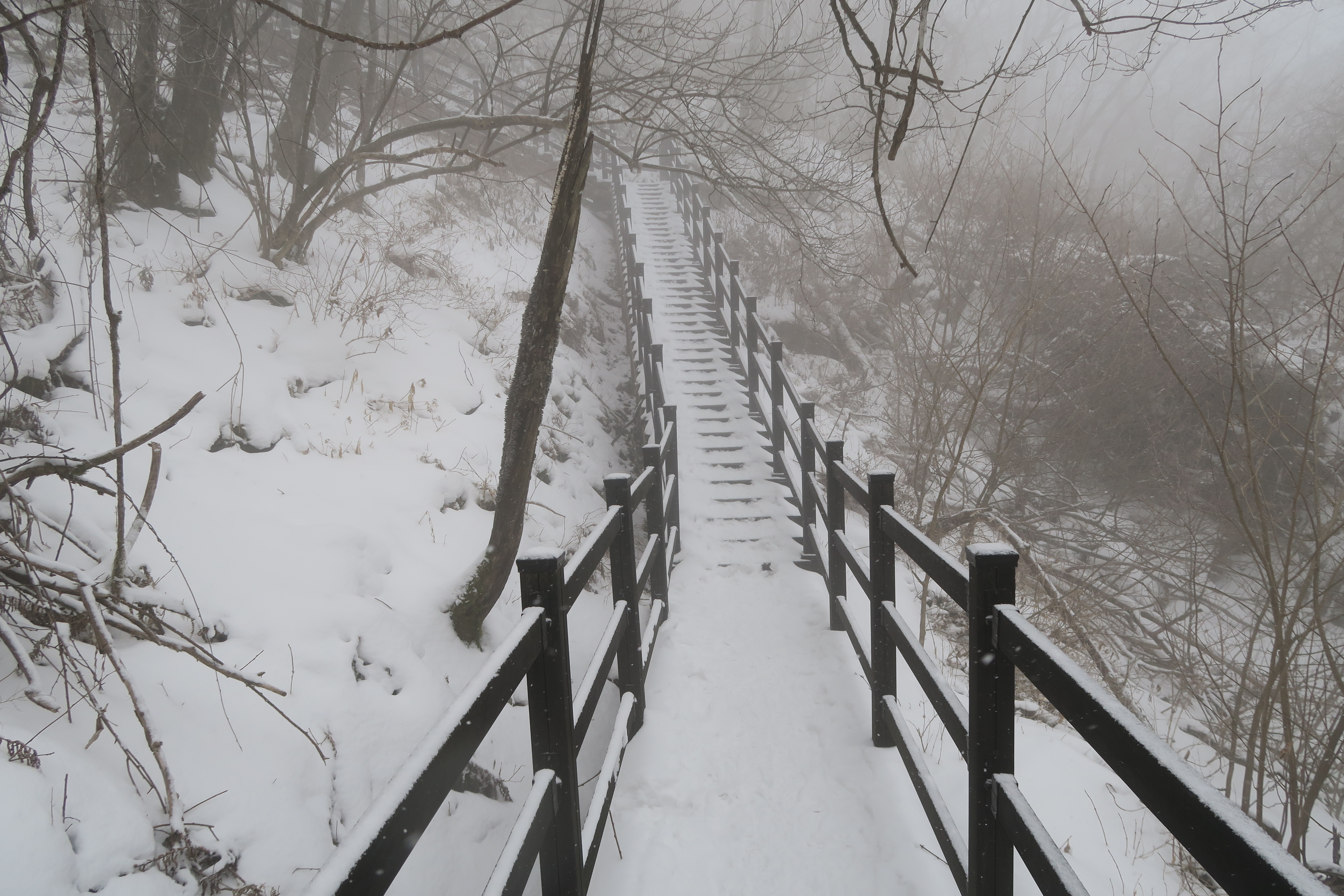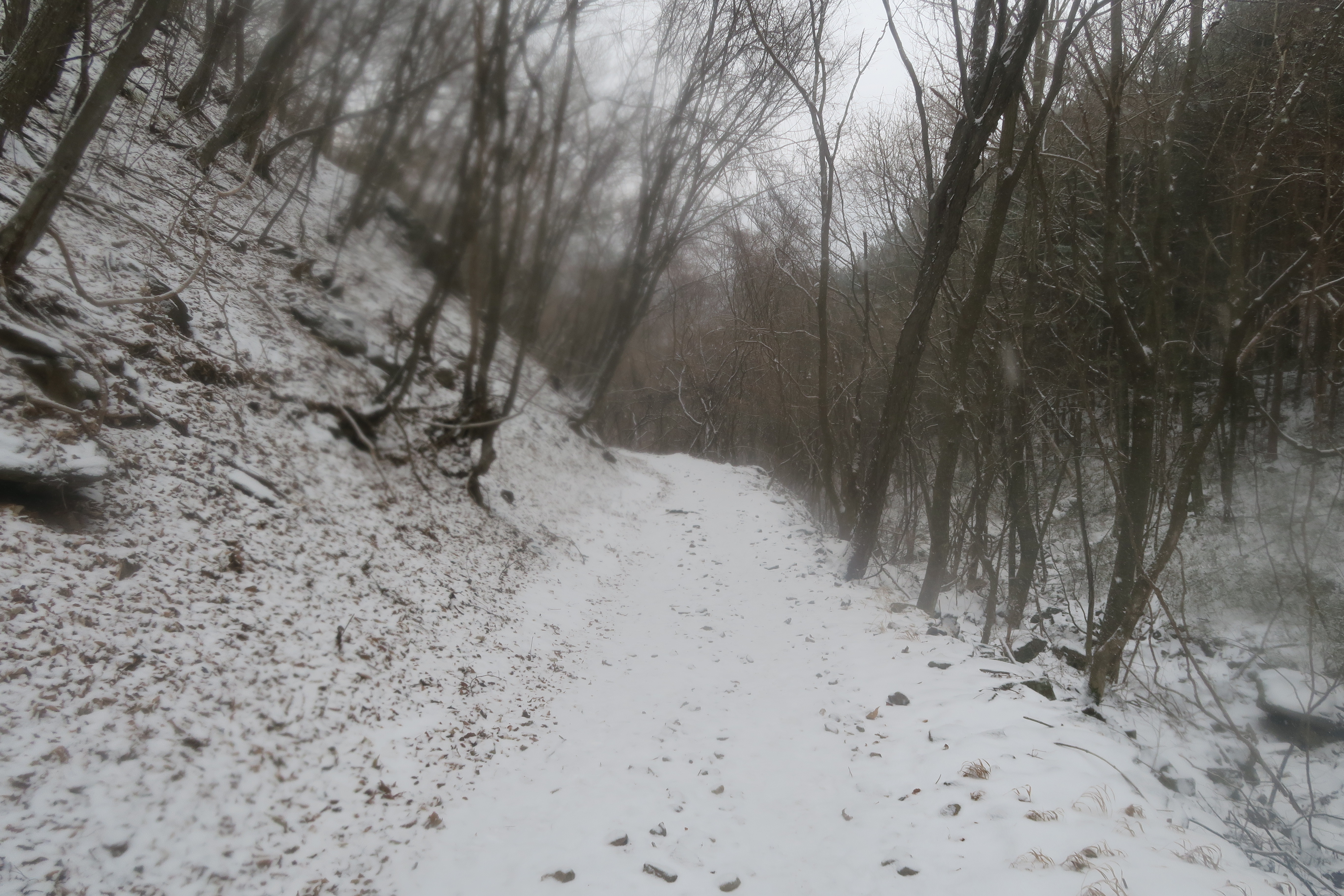 눈아래 얼음이 얼어서 조심스레 이동해야 한다.