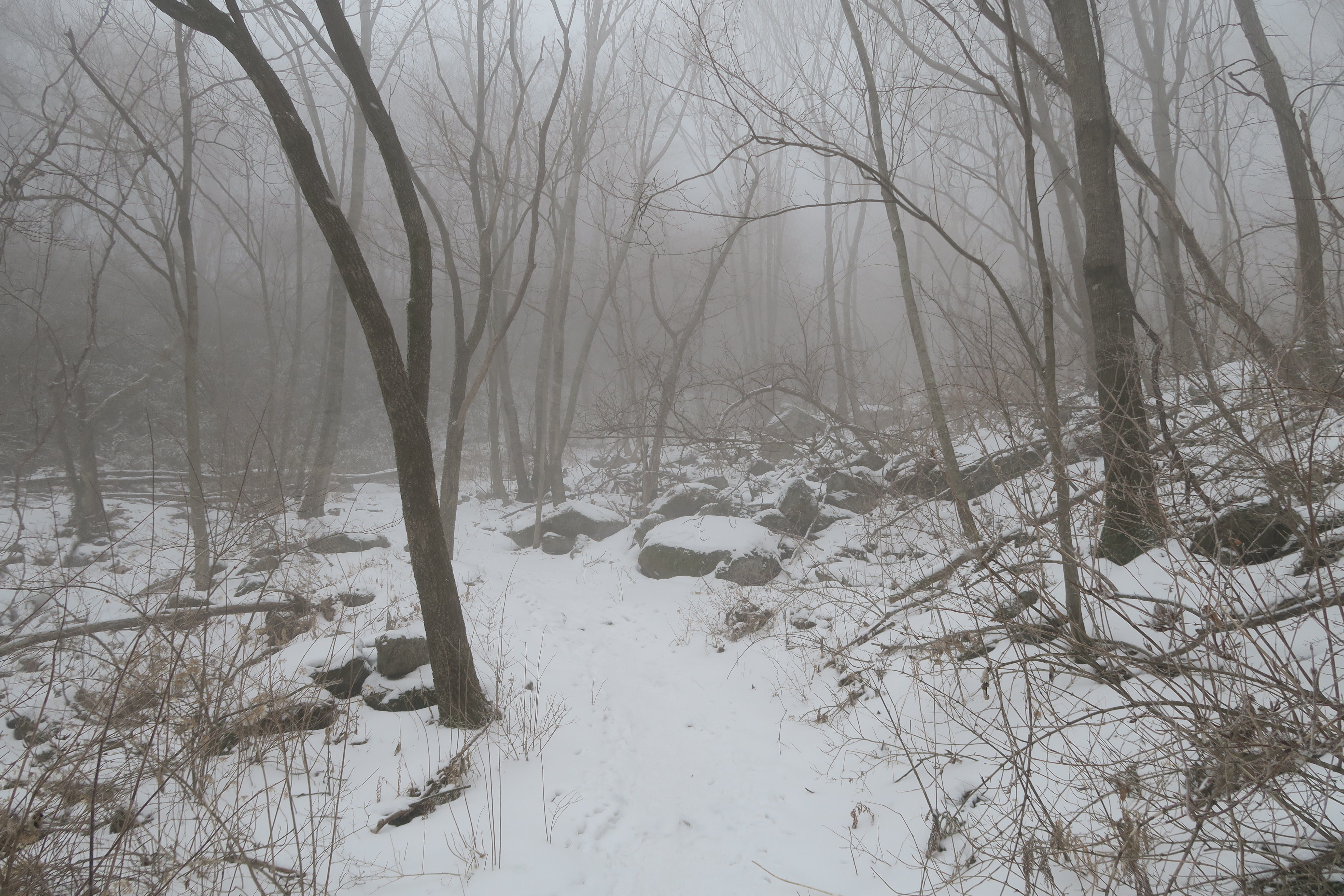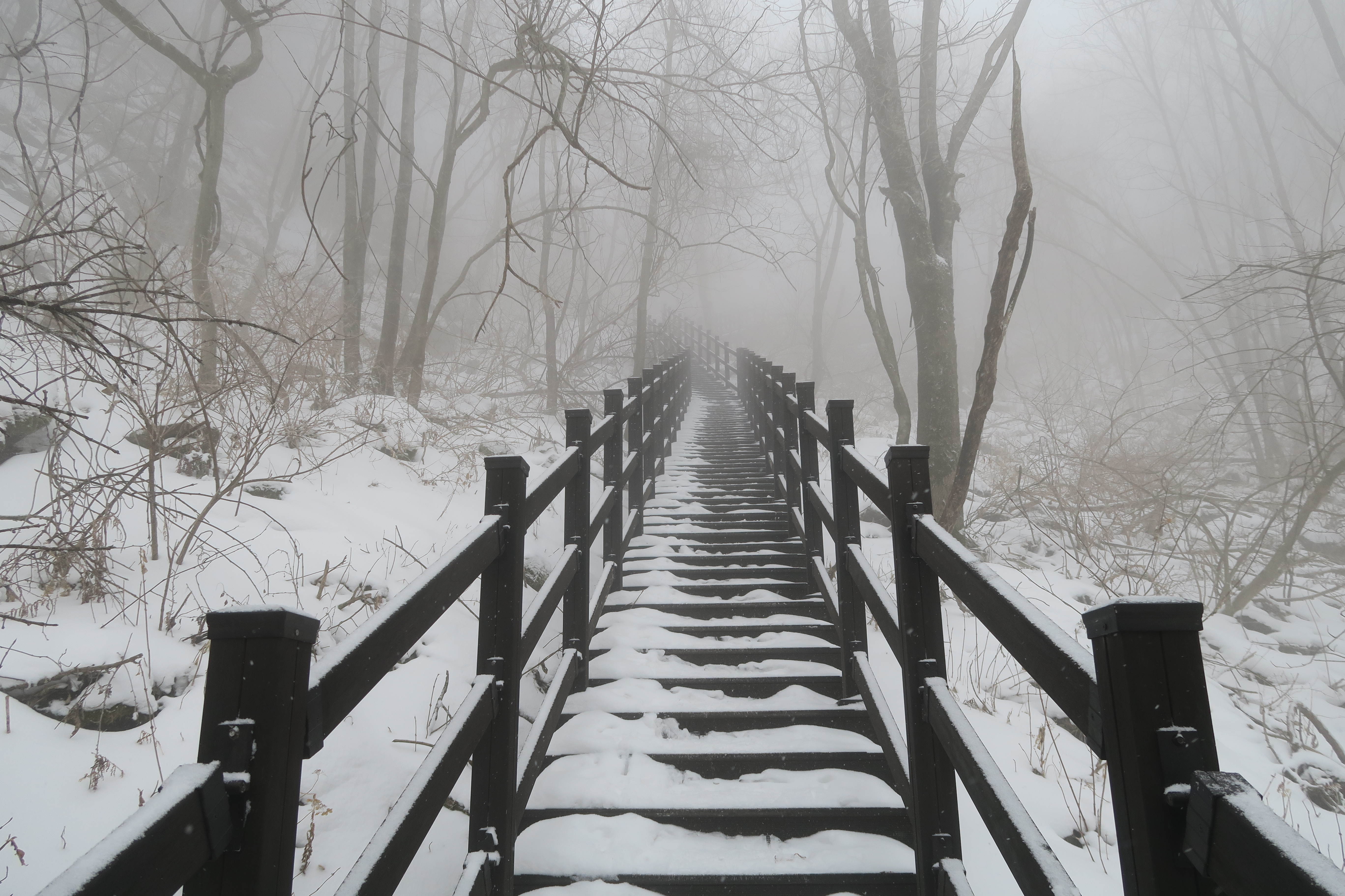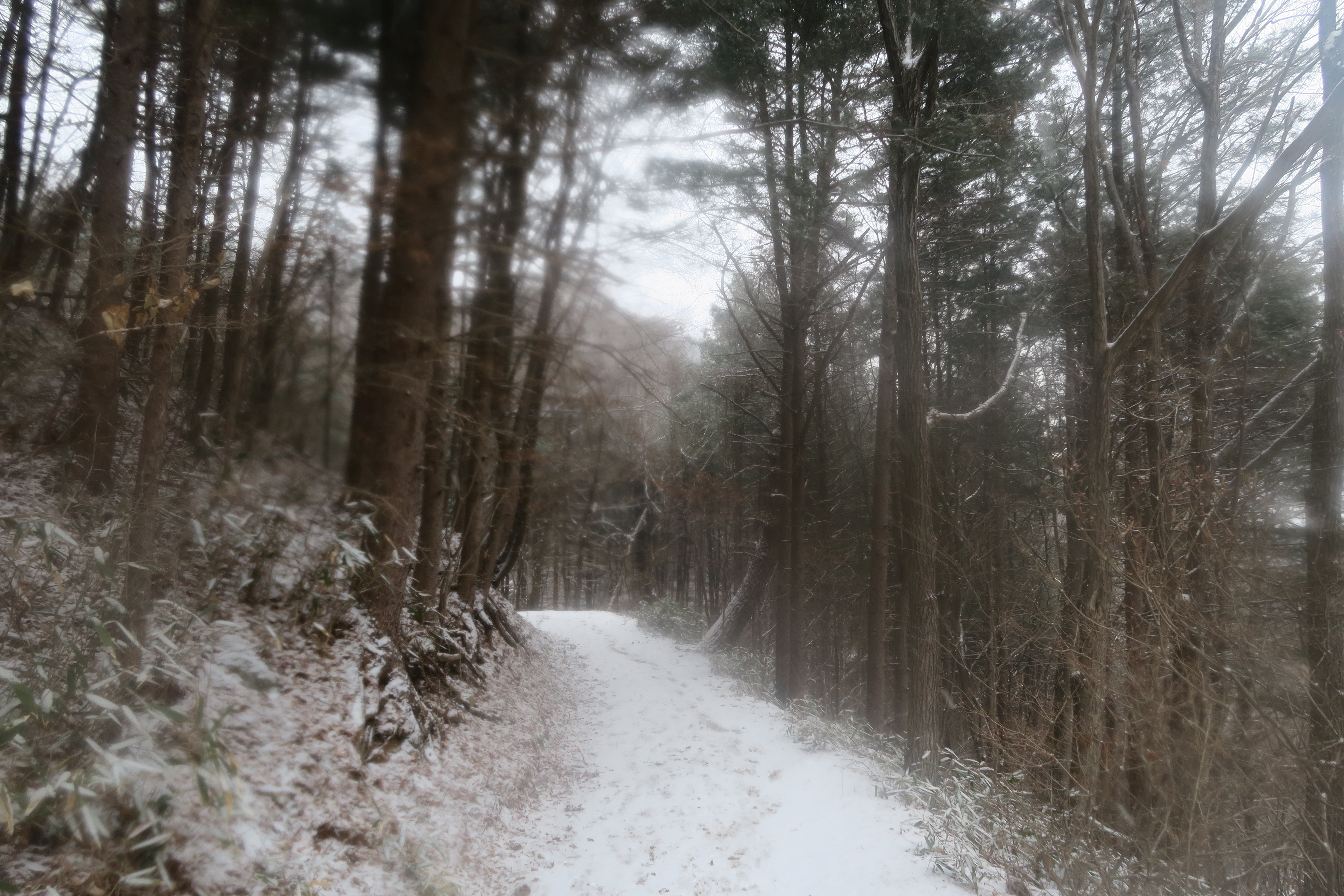눈아래 얼음이 얼어서 조심스레 이동해야 한다.