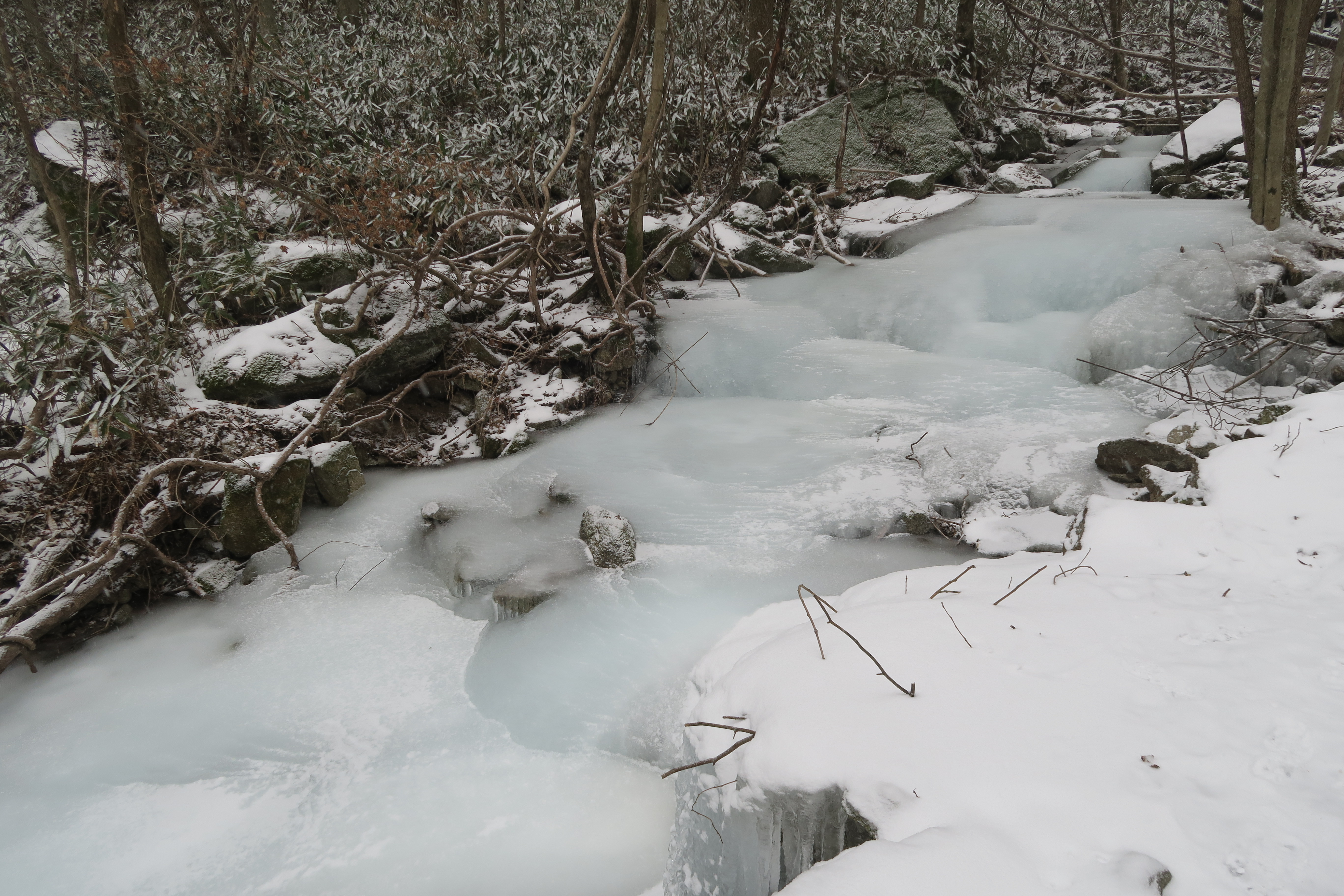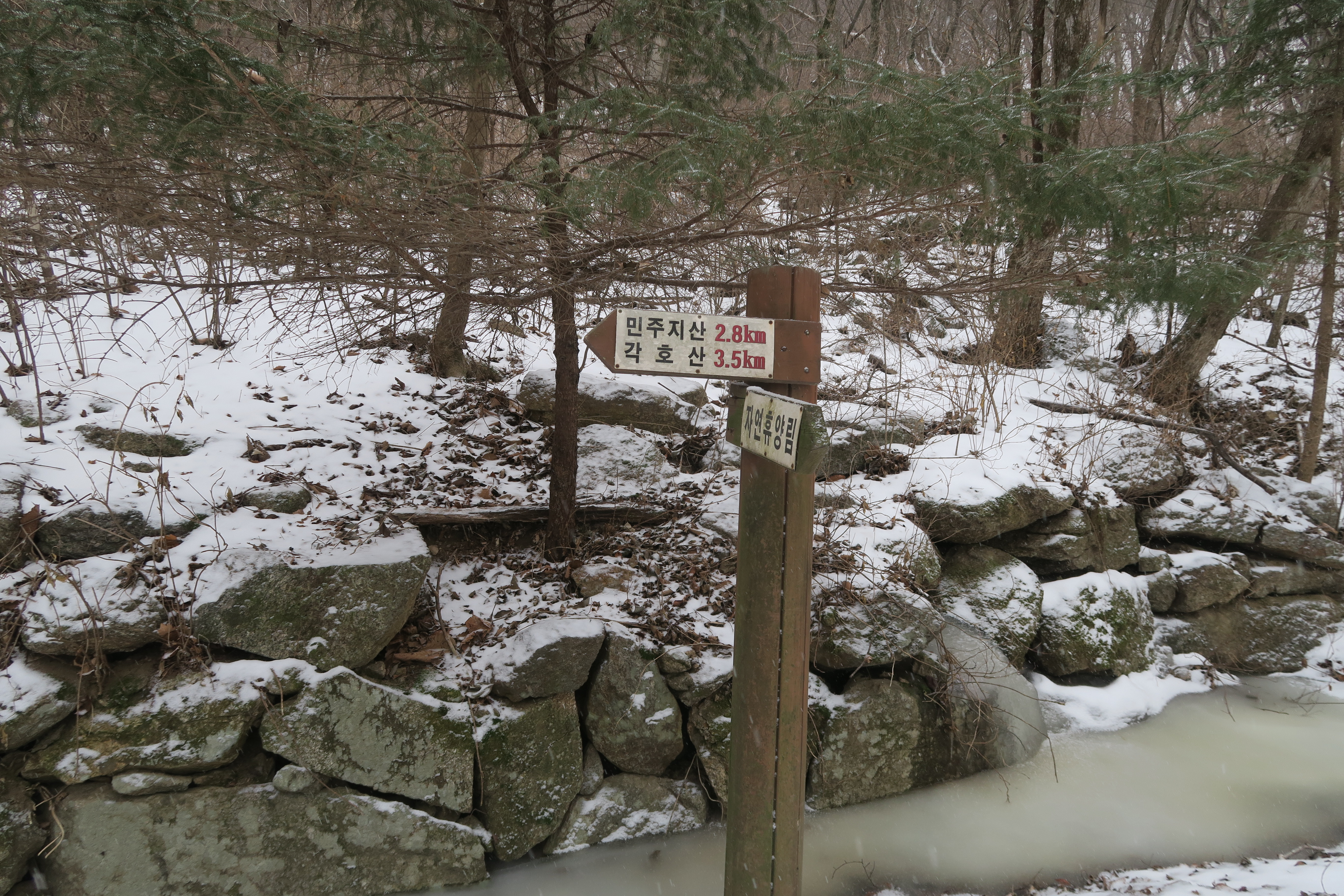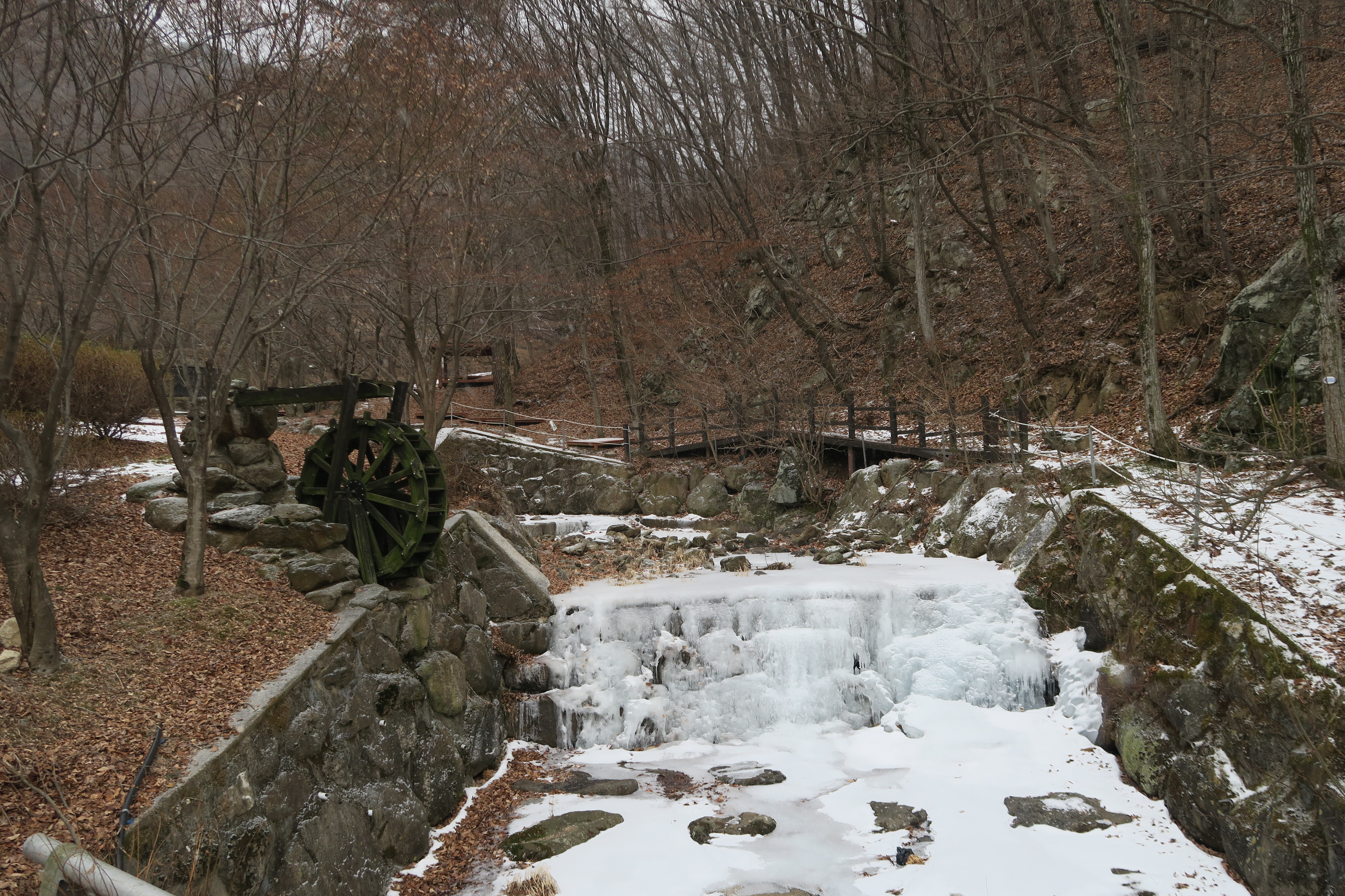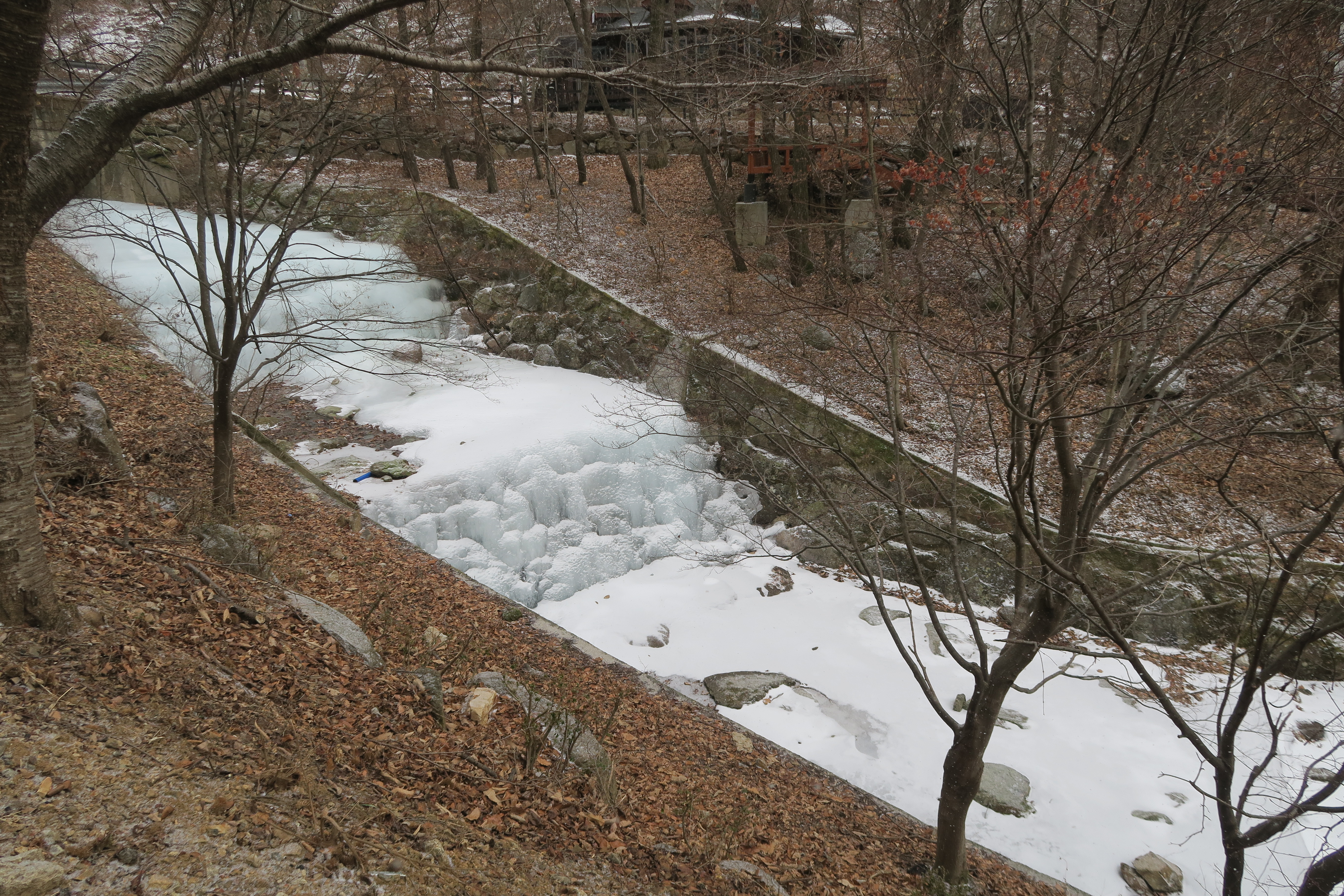 옆의 계곡에는 얼음이 꽁공 얼은 상태.