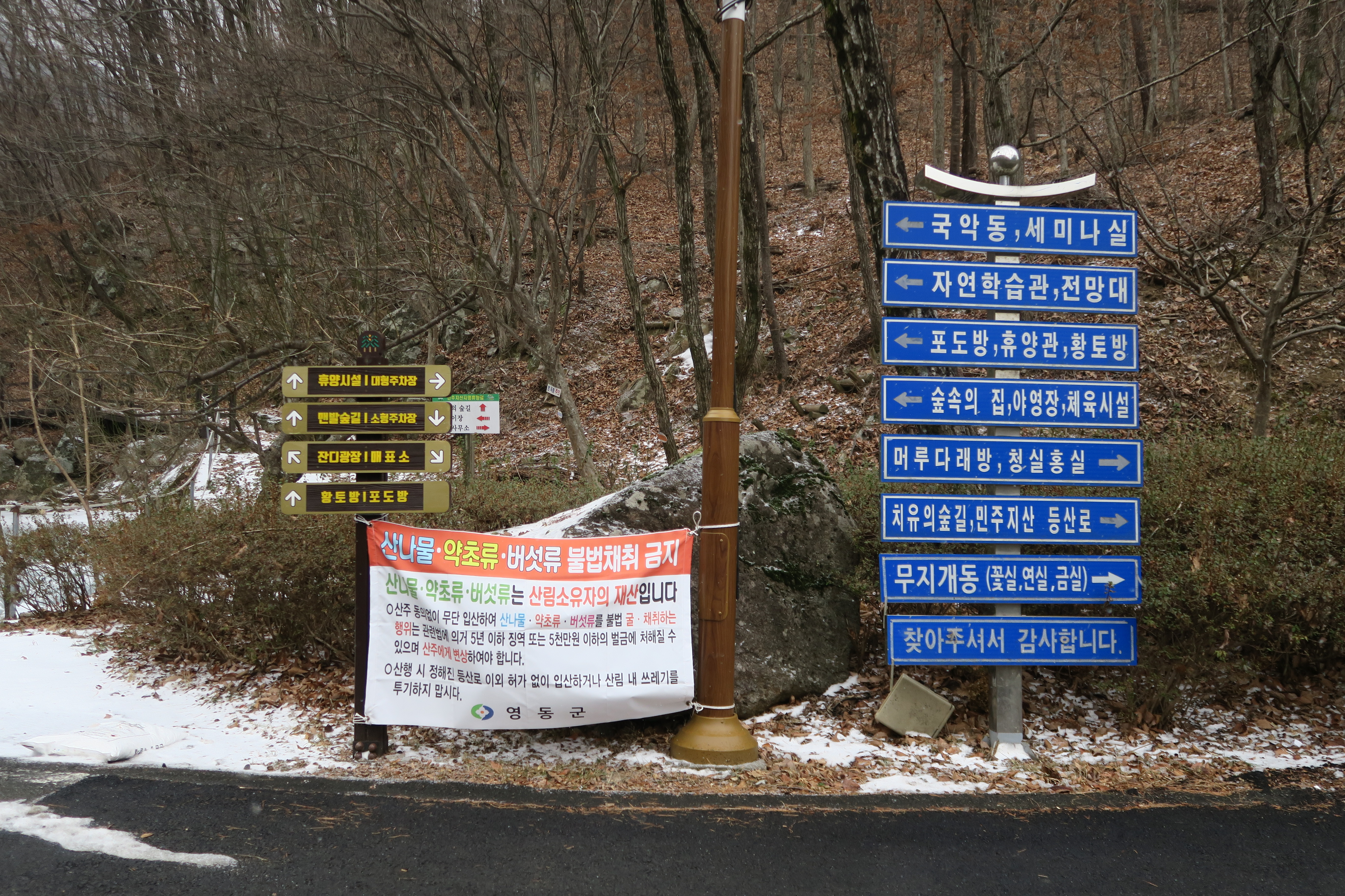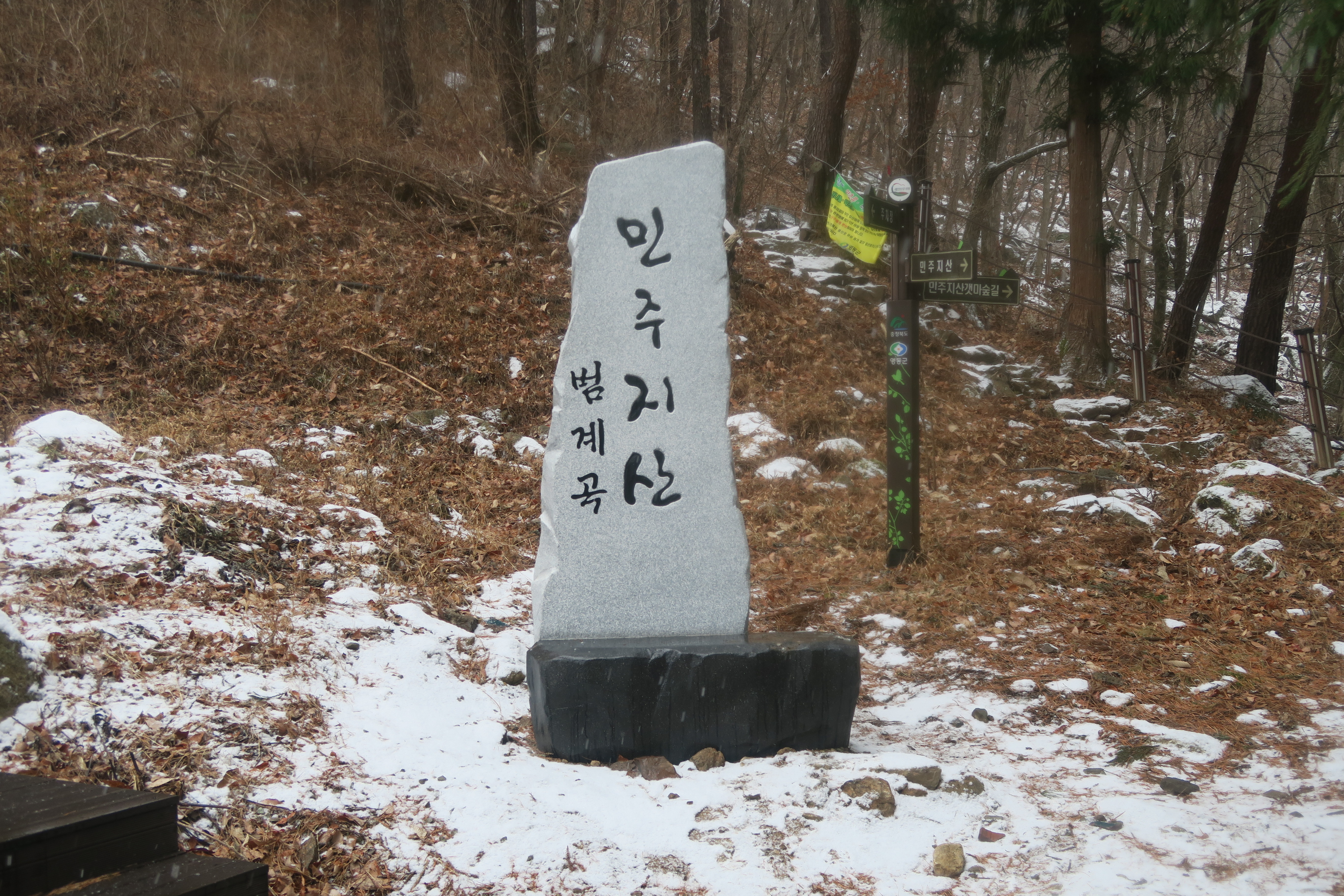 민주지산 자연 휴양림 입구에서 하차 산행을 시작한다.