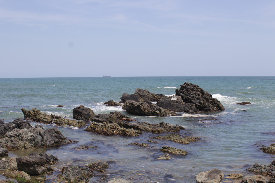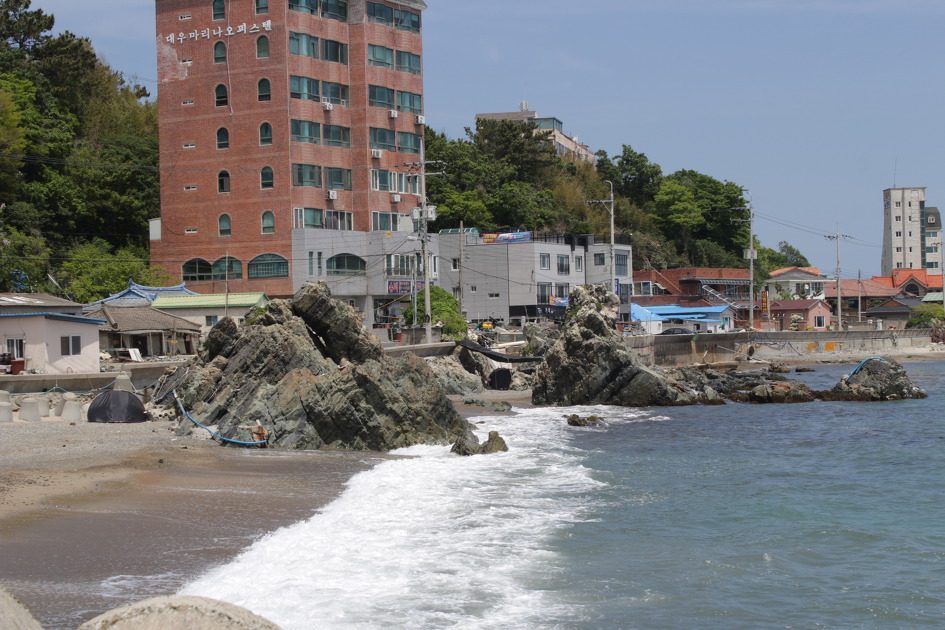 파도가 세차게 바위를 때리고 물려나길 반복.