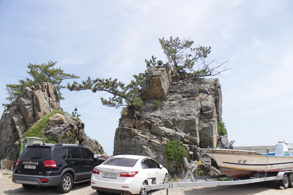 선돌바위 상부에 자라나는 해송, 우리는 칭구여!