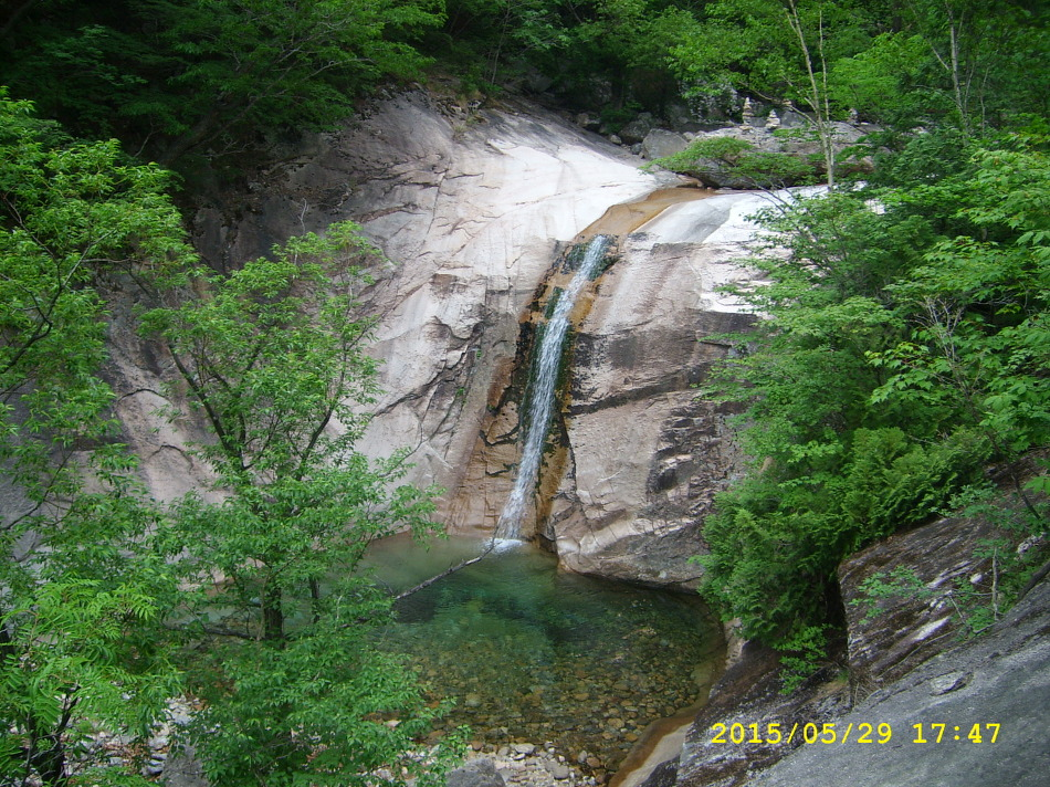 암벽사이로 물이 흘려내려 용손폭포를 이루고